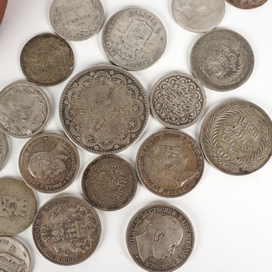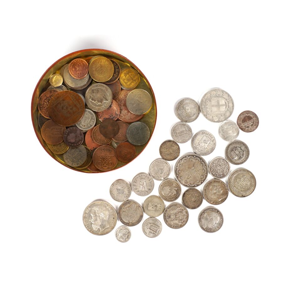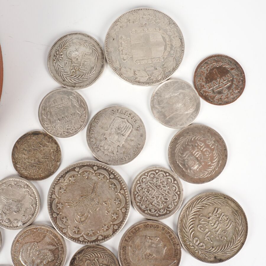 MONDE : Lot de monnaies dont 24 en argent de titres différents, essentiellement 19 et 20ème siècles, dont :