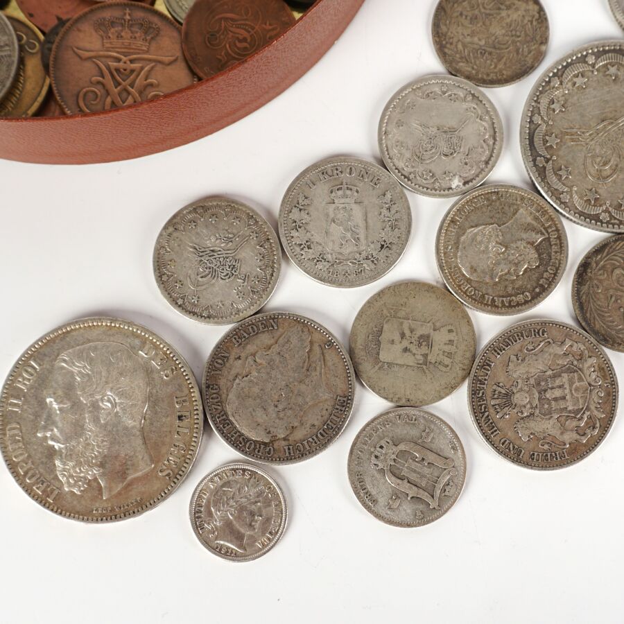 5 Lire Umberto 1er 1879, 5 Frcs Belge 1879, 2 Mark Prusse1877 A et 1905 A, 2 Mark Baden 1905 G, 2 Mark Hambourg 1903 J, 2 Pesetas 1884, Norvège 1 Krone 1887 et 1900, Turquie 20 Kurush et divisionnaires, Poids brut : 215 g environ.