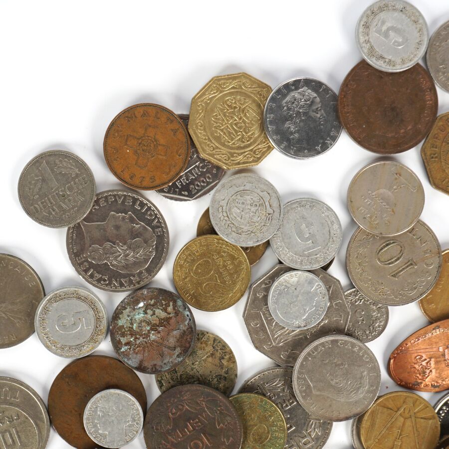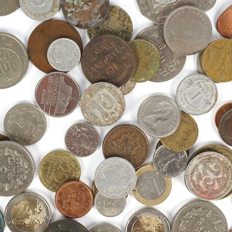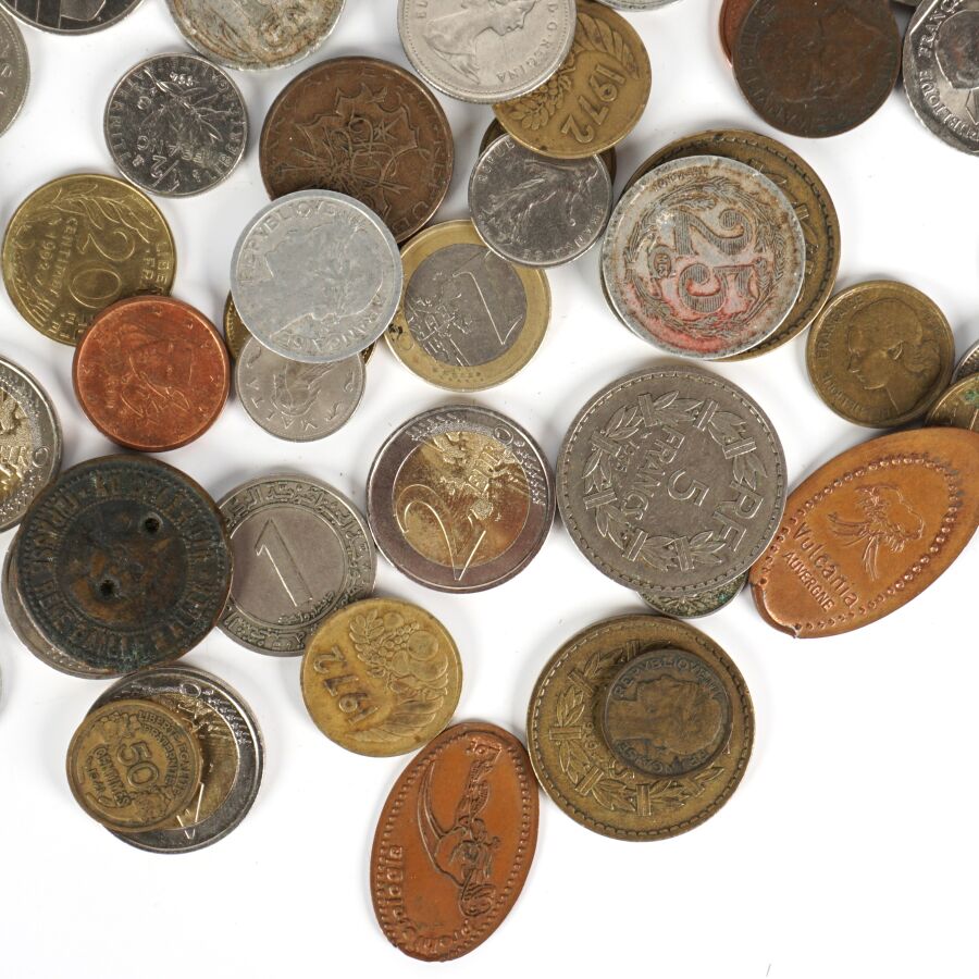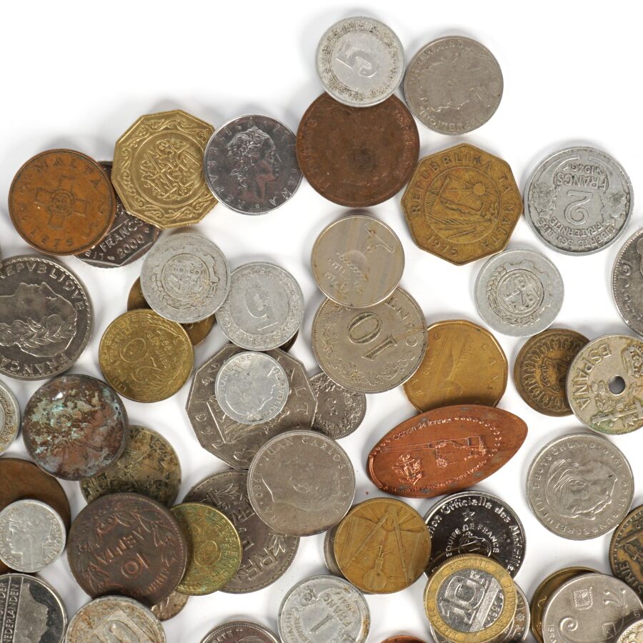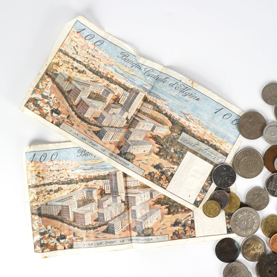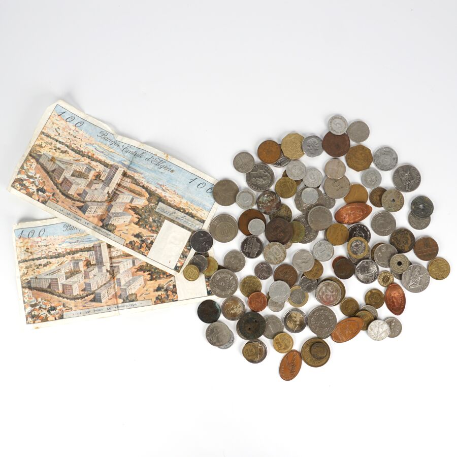 MONDE : Lot de monnaies, essentiellement 20ème siècle, dont Euro et 2 billets de 100 Dinars Algérien du 1-1-1964 (TB).