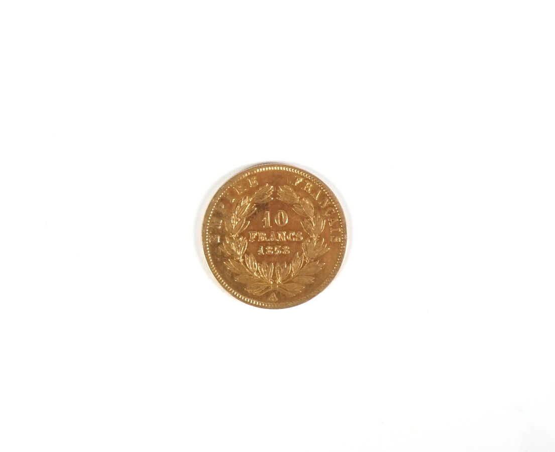 Monnaie 10 Francs or Napoléon III Empereur "tête nue", 1858 A. Poids brut : 3.1 g environ.