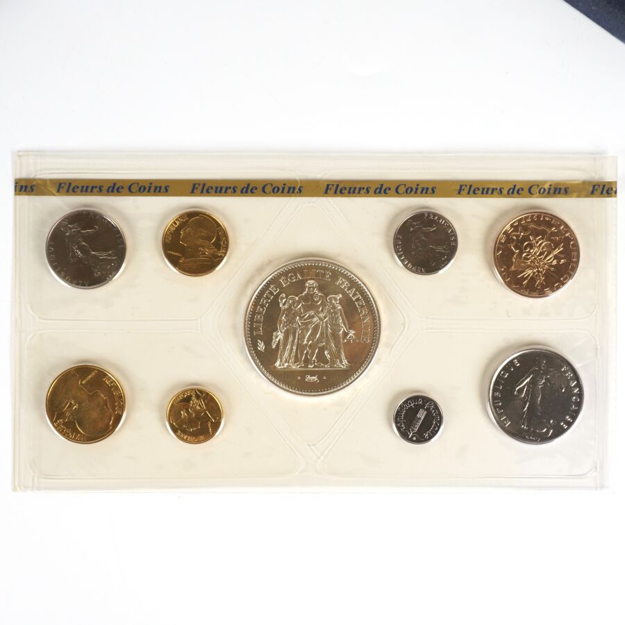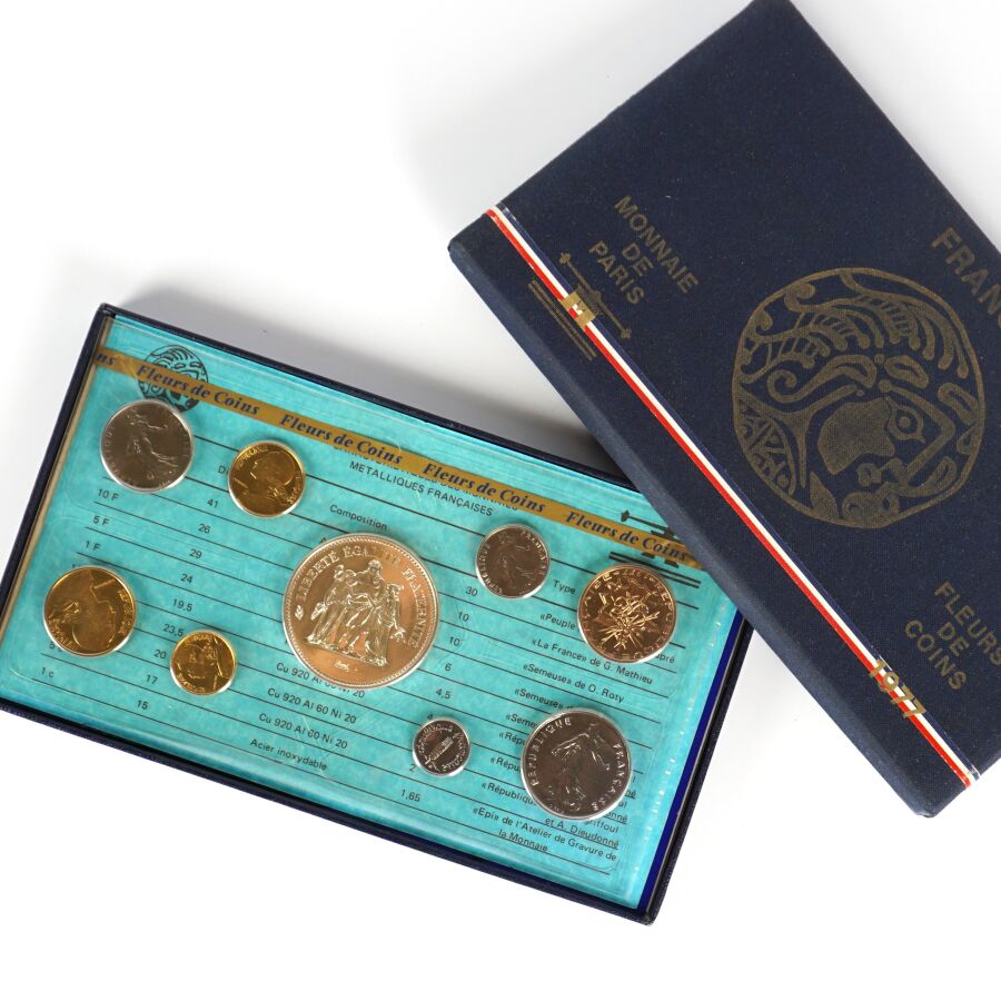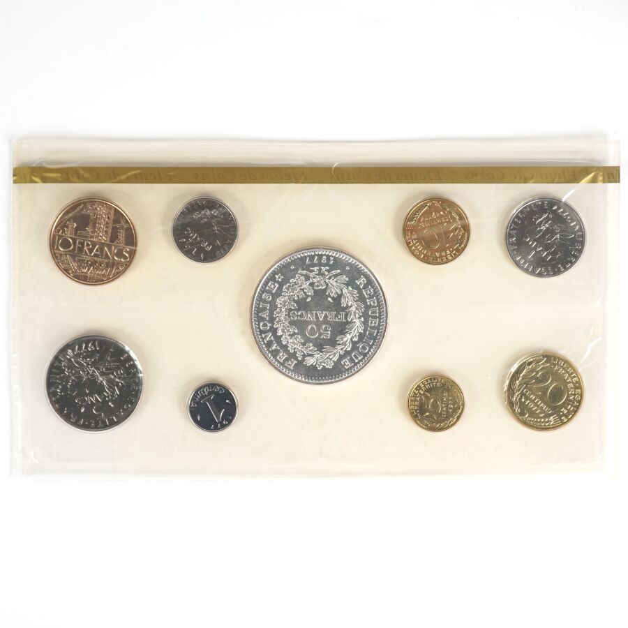MONNAIE DE PARIS : Coffret France Fleurs de coins 1977, 9 monnaies dont 50 Frcs Hercule argent, Poids brut : 30 g environ.