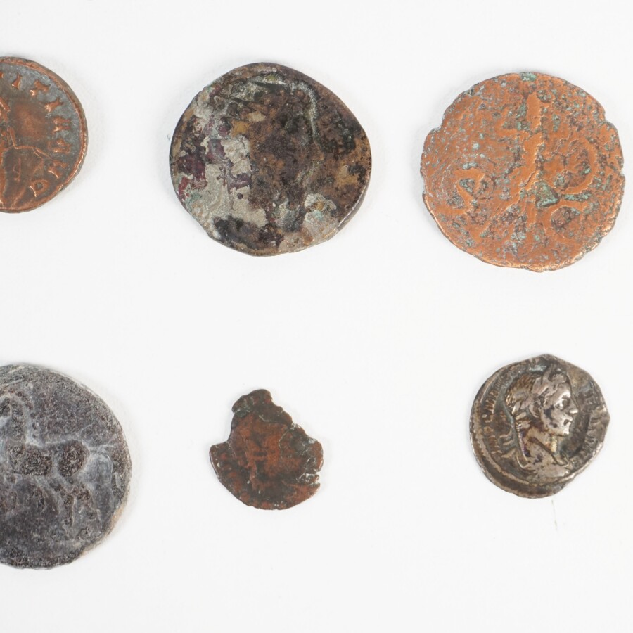 Monnaies romaines, argent, bronze et métal, diverses périodes et patines (en l'état).