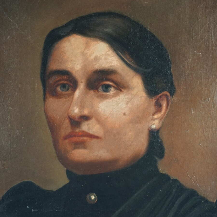 MONOUVRIER (XIXe), "Portrait de femme" 15 août 1896, huile sur toile signée et datée en bas à gauche, 70 x 56 cm (petit accroc et quelques écaillures).