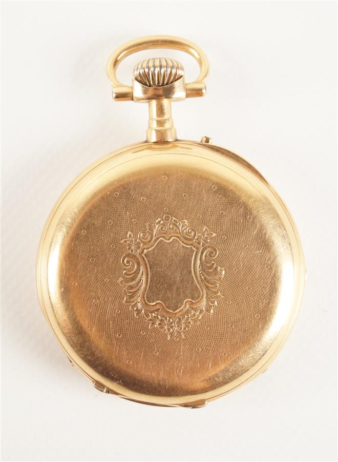 Montre à gousset or jaune, cadran chiffres romains. Poids brut : 76 g environ (cadran enfoncé).