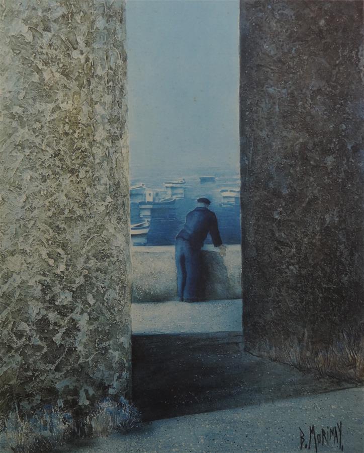 MORIMAY, "Homme sur le port", lithographie en couleurs signée dans la planche en bas à droite, 56 x 45 cm