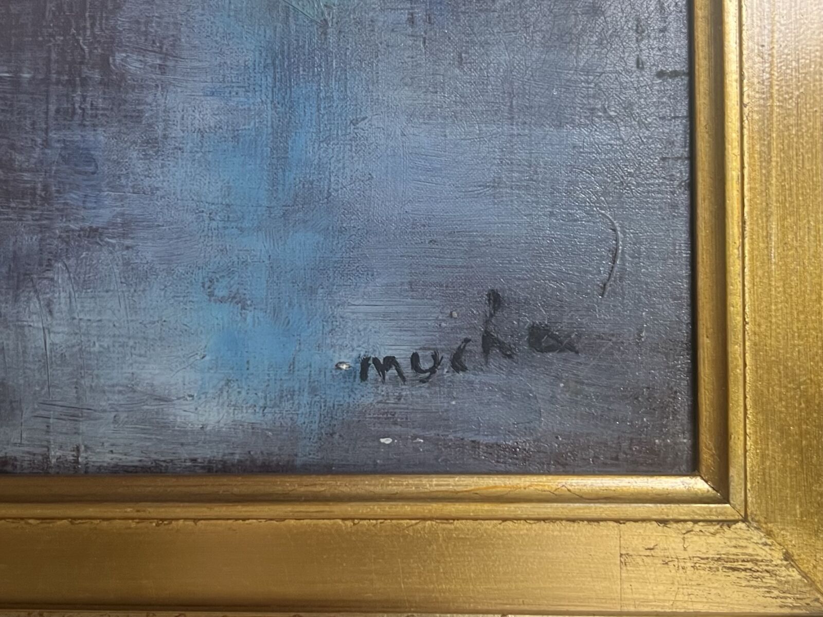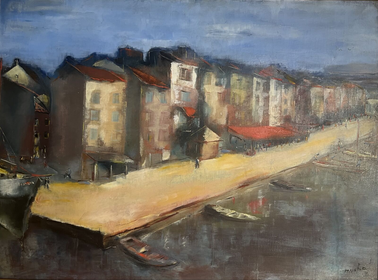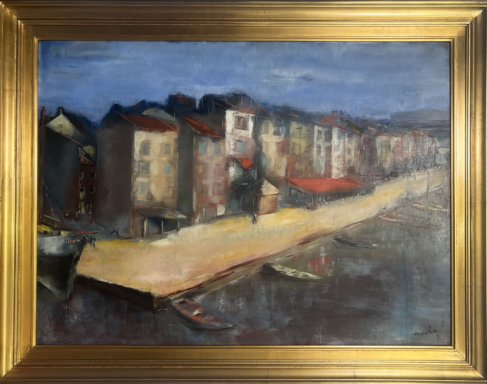 MYCHA (XXe), "Port", huile sur toile, signée en bas à droite, 73.5. x 54 cm