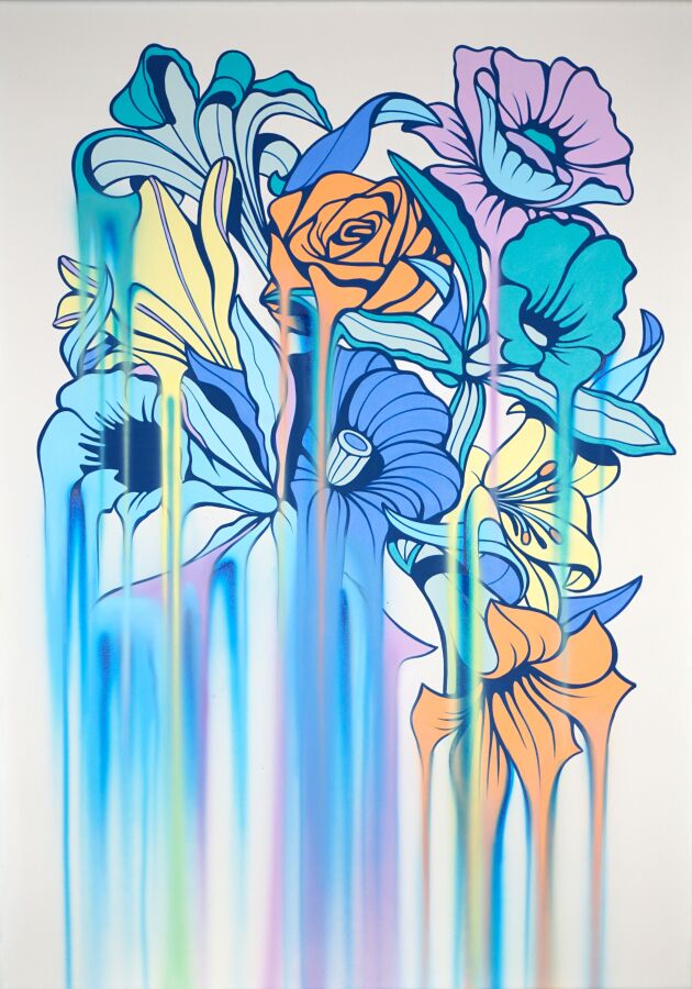 NERONE (1983),"Pyracantha" 2023, acrylique et aérographe sur toile signée au dos, 80 x 60 cm