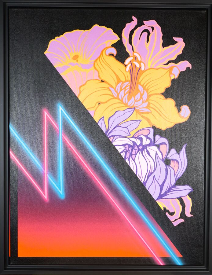 NERONE (1983), "Wisteria" 2025, acrylique, aérosol et aérographe sur toile signée au dos, 80 x 61 cm.