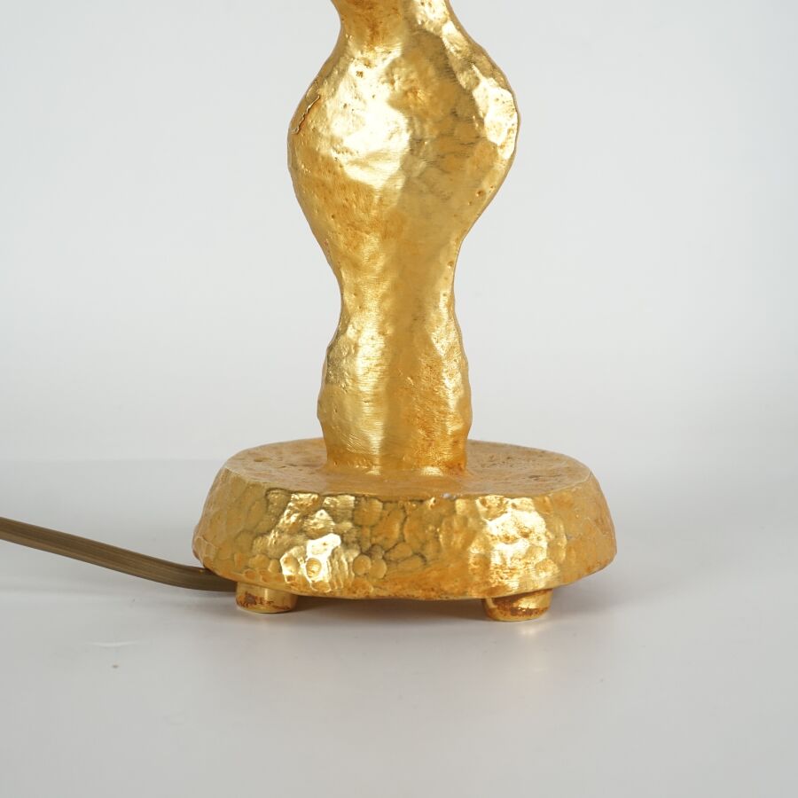 Nicolas DE WAËL (XX-XXIe) & FONDICA : Lampe à poser, fût en bronze doré et martelé de forme libre, signé, marqué 2000 dessous, H. 40,5 cm.