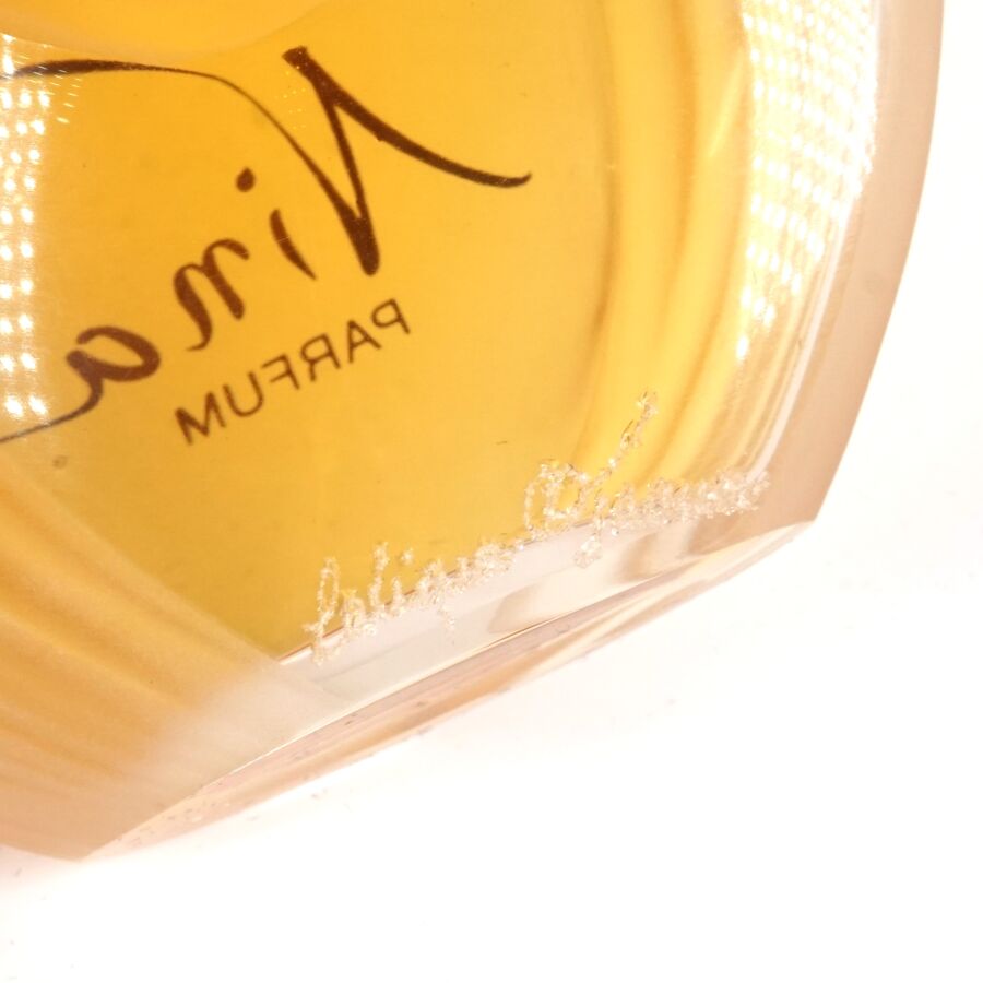 NINA RICCI : "Nina", flacon en verre moulé incolore partiellement satiné, inscriptions en sérigraphie dorée sur une face, bouchon sphérique rainuré, scellé, signé Lalique France à la pointe sur la base, PDO, présenté dans son coffret d'origine (56 ml).