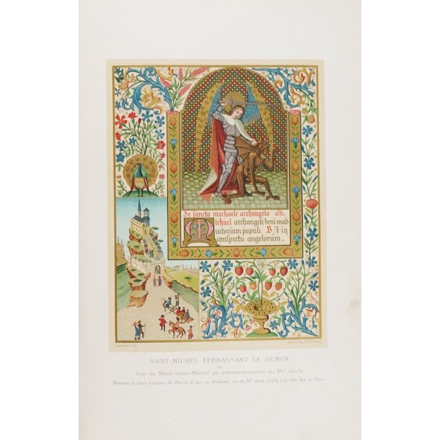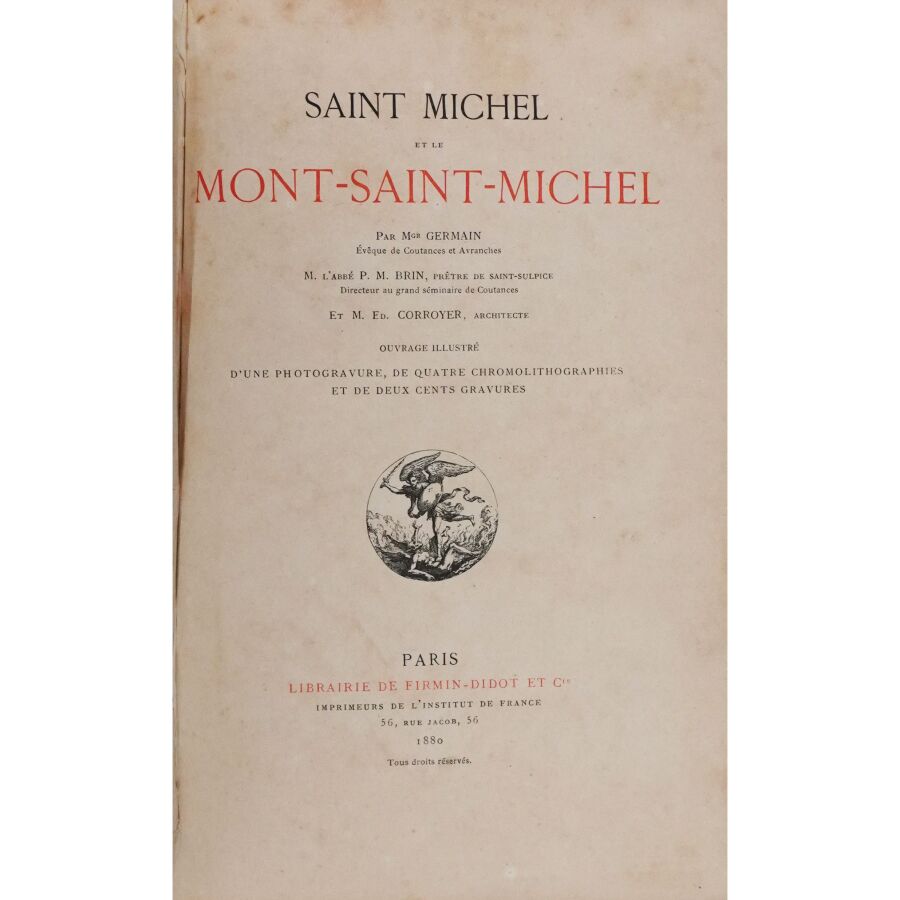 Normandie - GERMAIN, BRIN & CORROYER. Saint Michel et le Mont-Saint-Michel. Ouvrage illustré d'une photogravure, de quatre chromolithographies et de deux cents gravures. Paris, Firmin Didot et Cie, 1880. In-4 demi-chagrin rouge, dos lisse et plats ornés d'un riche décor doré de l'éditeur, tr. dorées (Mouveau et Levesque rel.). Qqs petites usures et rousseurs sinon bon exemplaire.