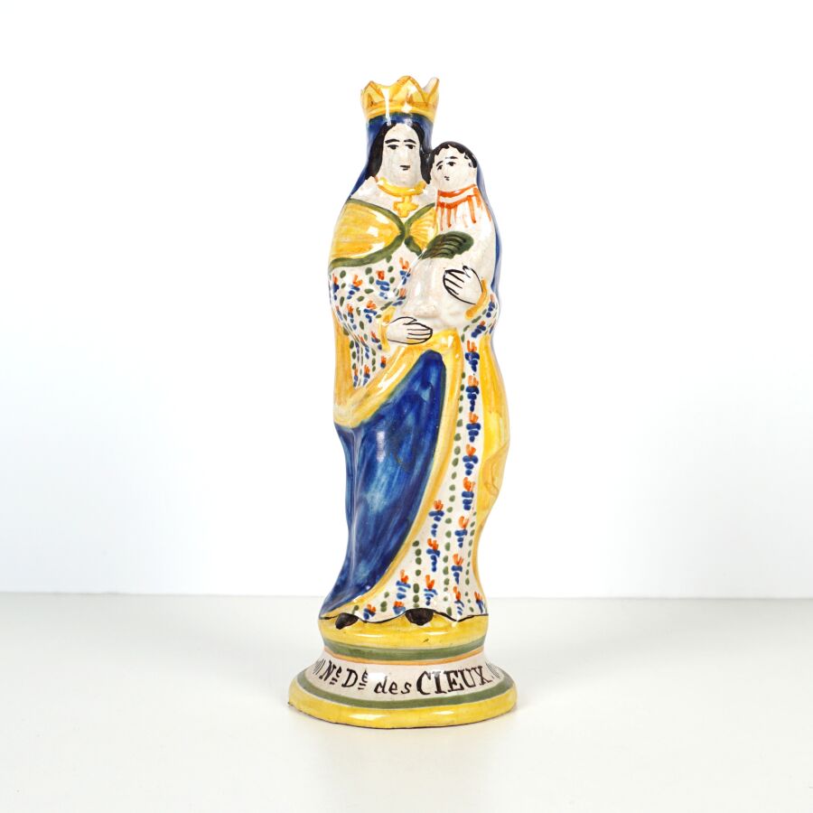 Notre-Dame des Cieux, sujet en faïence émaillée polychrome, 19ème siècle, H. 23.5 cm.