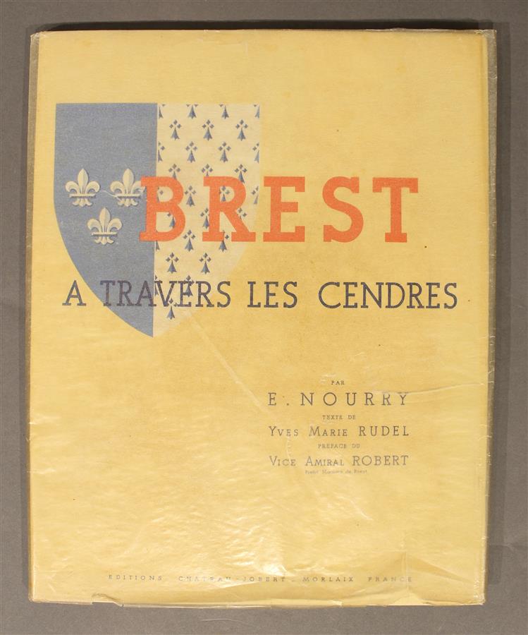 NOURRY (E.) - RUDEL (Yves Marie) - Brest - A travers les cendres - Morlaix ; Editions Chateau-Jobert, 1948 - 1 volume In-4° broché sous chemise rempliée cartonnée et illustrée au 1er plat - Très nombreuses illustrations in et hors-texte en couleurs par E. Nourry - Bon exemplaire numéroté sur vélin de Renage.