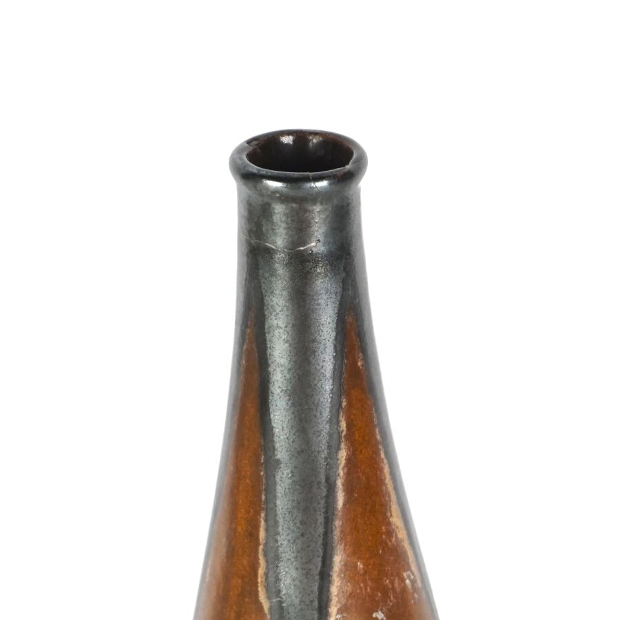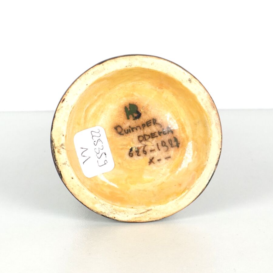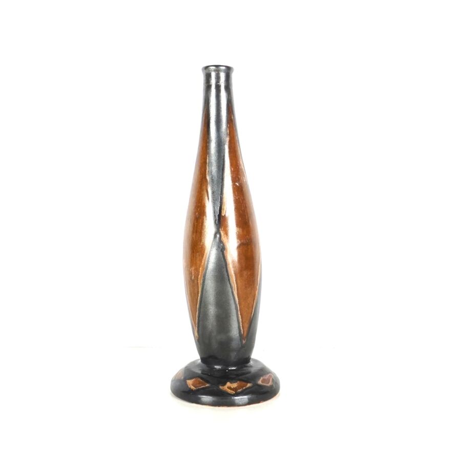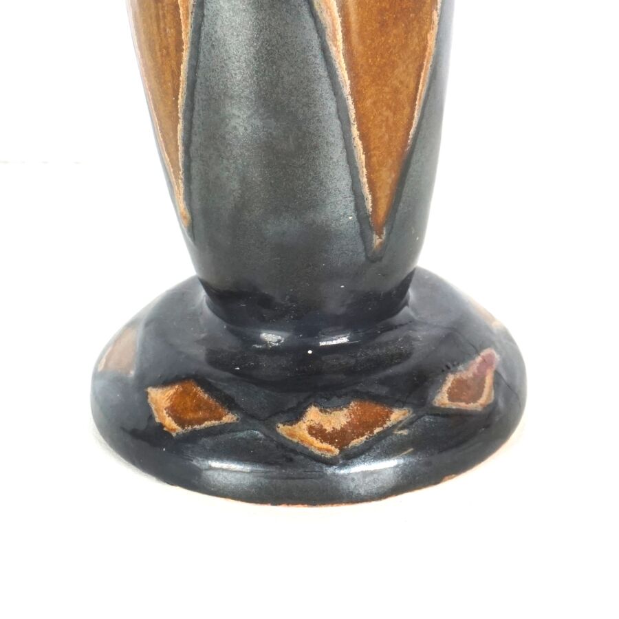 ODETTA - HB QUIMPER : Vase soliflore en grès émaillé polychrome à décor de losanges, signé et numéroté 626-1321 sous la base, H. 22.5 cm (restauration au col).