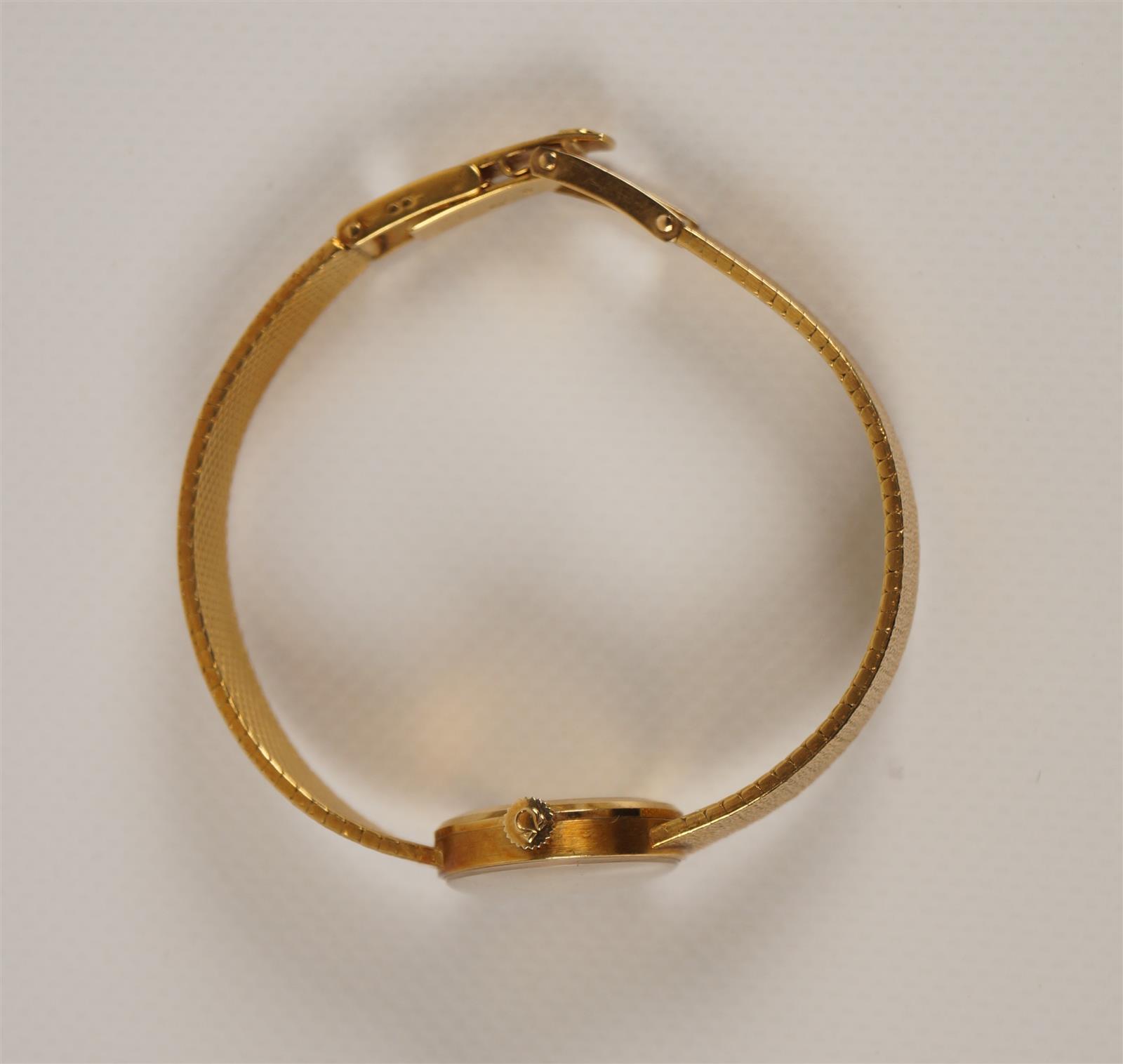 OMEGA : Montre de dame en or jaune 18 K (750/oo) bracelet semi-rigide, circa 1970. Poids brut : 34.38 g environ (écrin d'origine).