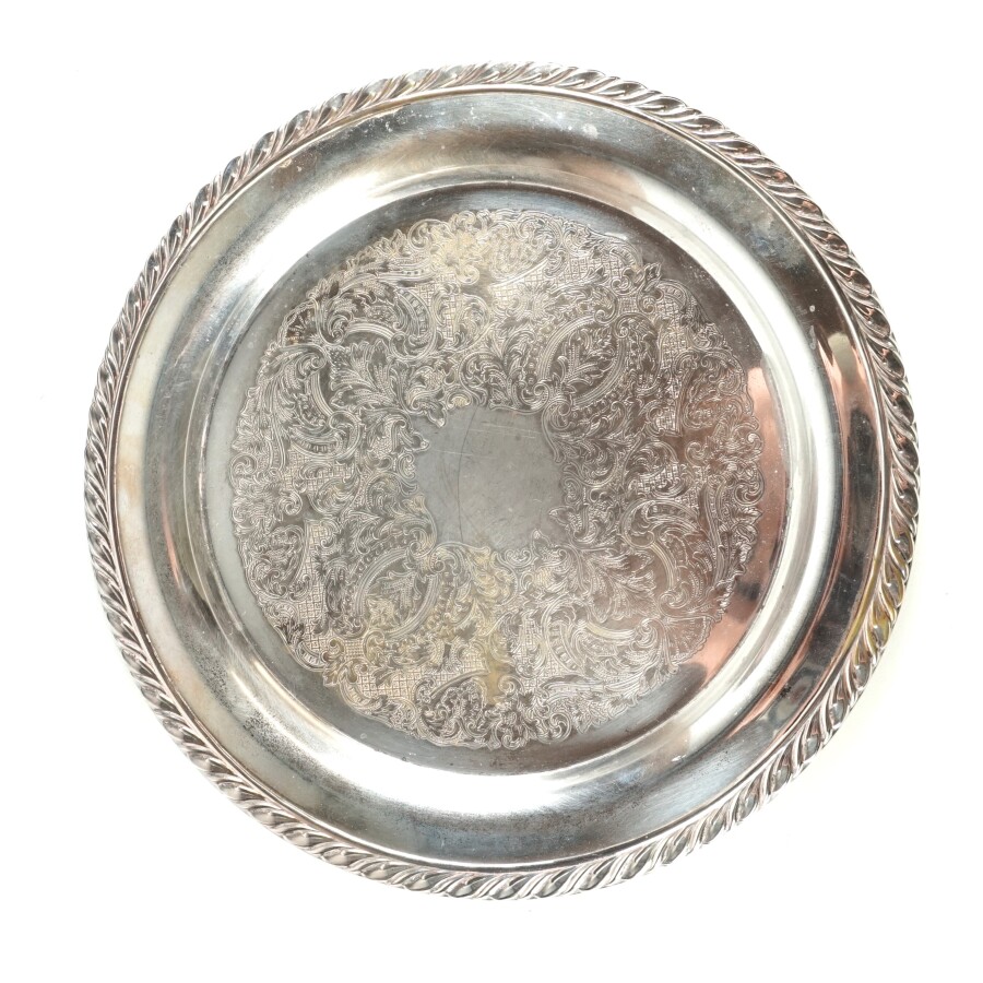 ONEIDA USA : Trois plateaux, à décor ciselé de végétaux, Diam : 31.2 et 26.1 cm. L. 56 cm.