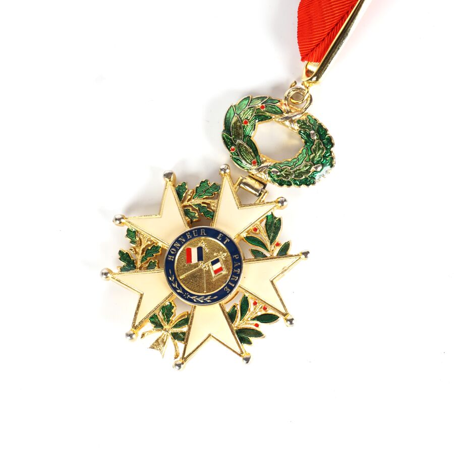 ORDRE DE LA LEGION D'HONNEUR (1802) - V REPUBLIQUE (1958) - ETOILE DE COMMANDEUR, en métal doré et émail à froid, 31 x 90 mm, cravate de 40 cm, SUP.