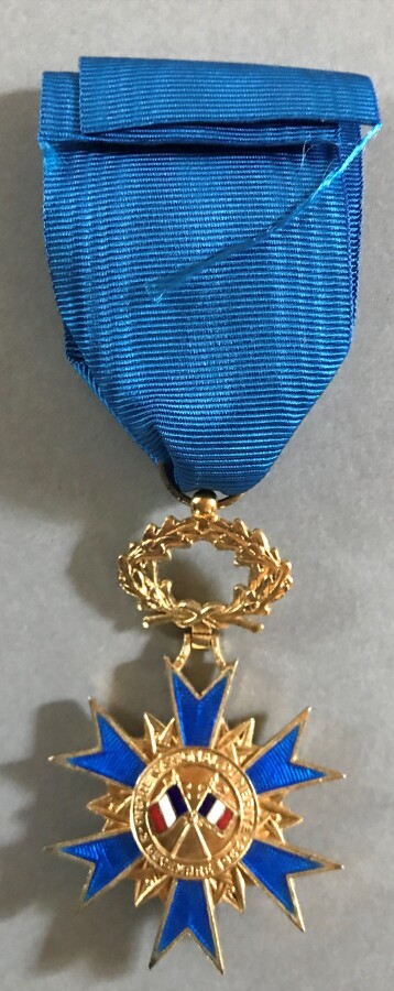ORDRE NATIONAL DU MERITE (1963) - ETOILE D'OFFICIER, en vermeil et émail, fabrication de la Monnaie de Paris, 37 x 58 mm, ruban de 38 mm de large avec rosette, TBE/SUP.