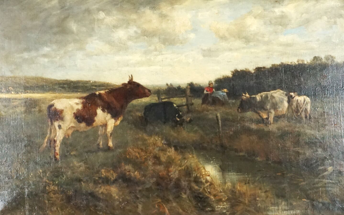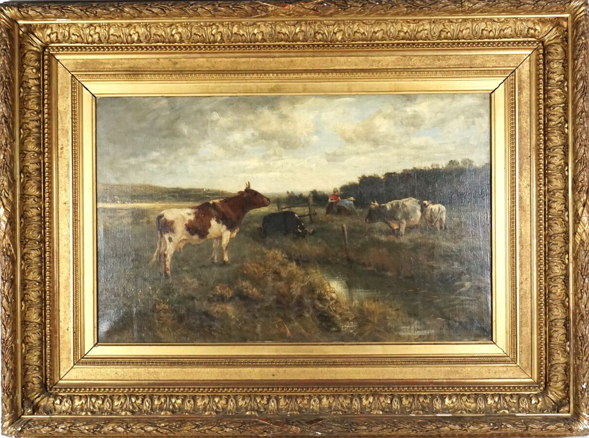 Otto Karl Kasimir VON THOREN (1828-1889), "Vaches au pré", huile sur toile signée en bas à droite, 41 x 66.5 cm.