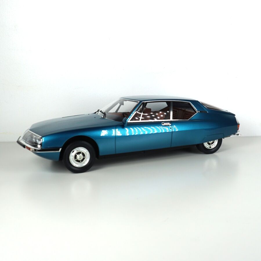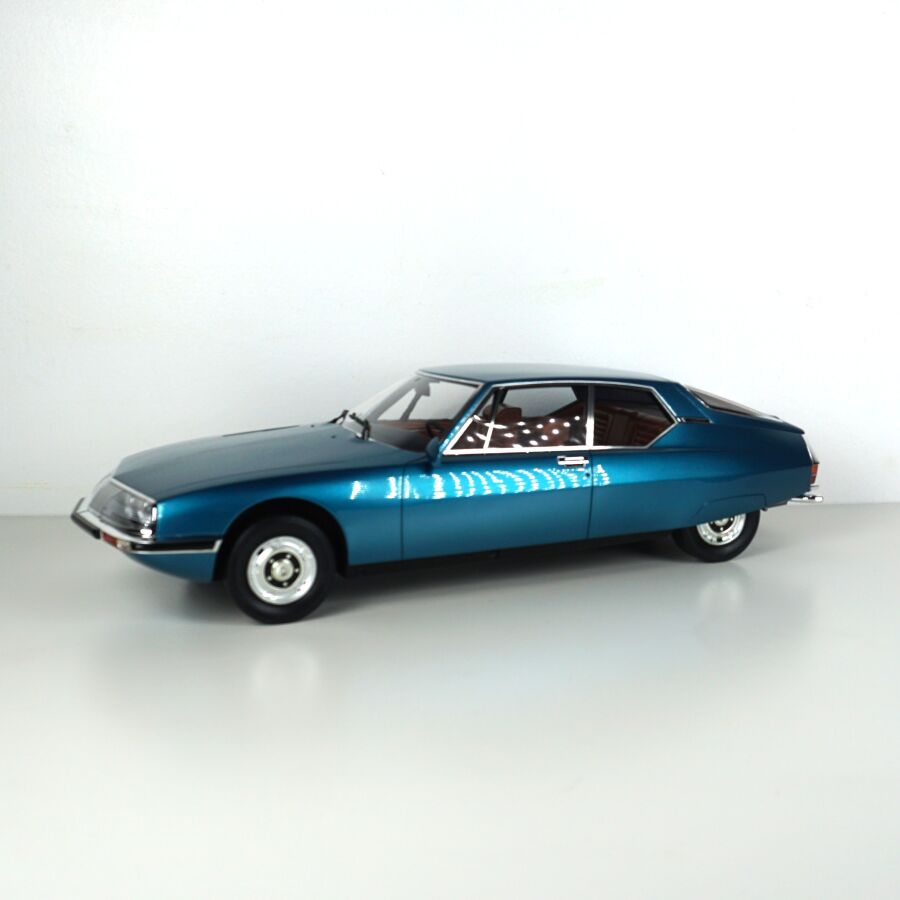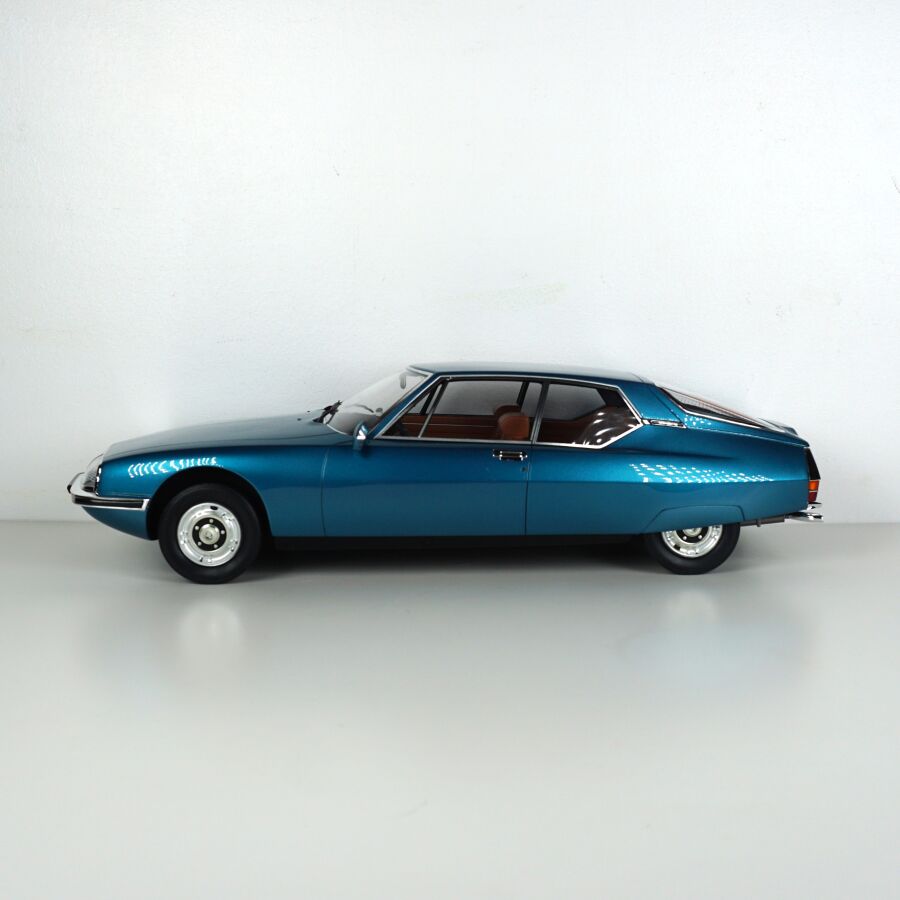 OTTO MOBILE : Citroën SM, échelle 1/12ème, bleue intérieur camel, exemplaire numéroté 445/999, présentée dans sa boîte d'origine.