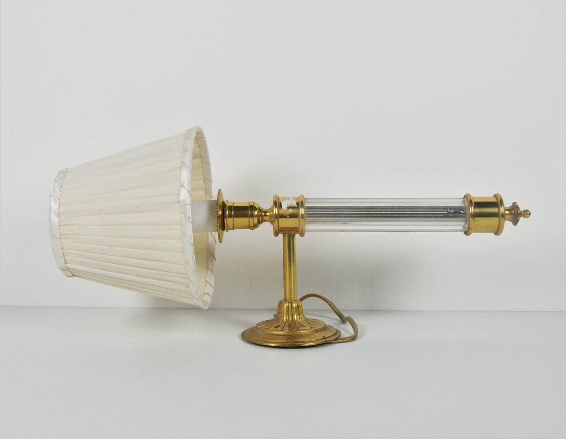 Paire d'appliques en cuivre, le fût cannelé en matière plastique imitant le verre, H. 22 cm (manques et accidents).