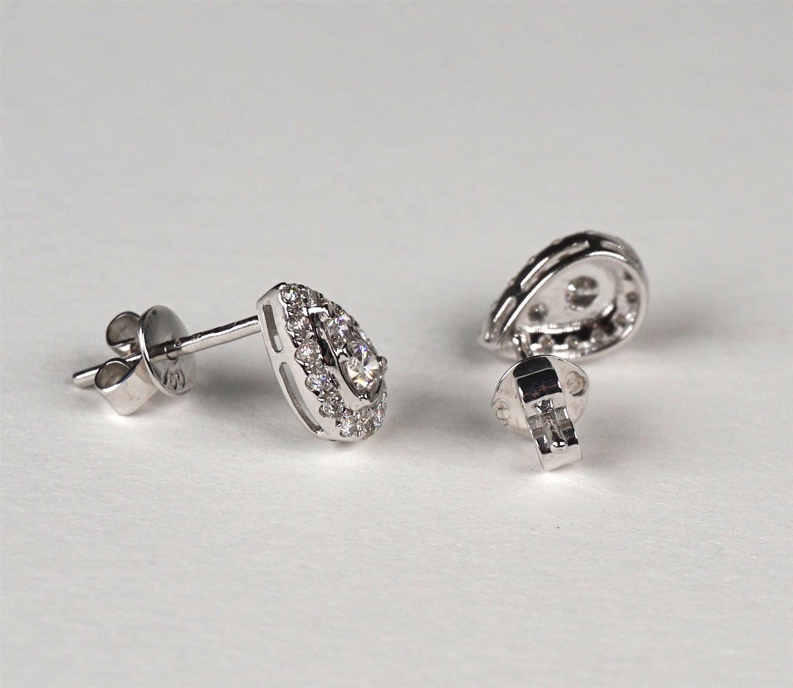 Paire de boucles d'oreilles "Poires" en or blanc 18 K (750/oo) serties de 32 diamants blancs taille moderne, 0,45 ct. Poids brut : 1.5 g environ.
