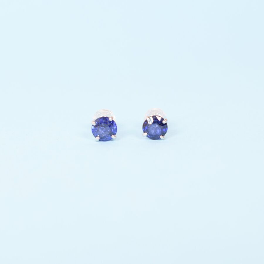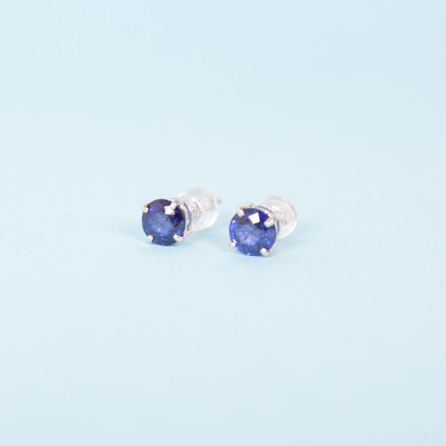 Paire de boutons d'oreilles en or blanc 18K (750/oo), ornés de saphirs calibrant 1.6 ct environ, fermoirs siliconés en or 18K (750/oo). Poids brut : 1.1 g