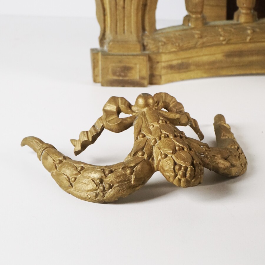 Paire de chenets en bronze doré et ciselé à décor de têtes de béliers parmi des guirlandes surmontés de pots à feu ornés de guirlandes, la barre ajourée figurant une balustrade, fin du 19ème siècle, H. 42 cm. L. Un chenet : 40 cm (oxydations, une guirlande à refixer).