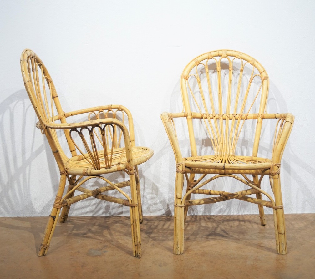 Paire de fauteuils à haut dossier en bambou courbé, H. 94 cm (craquelures et fentes).
