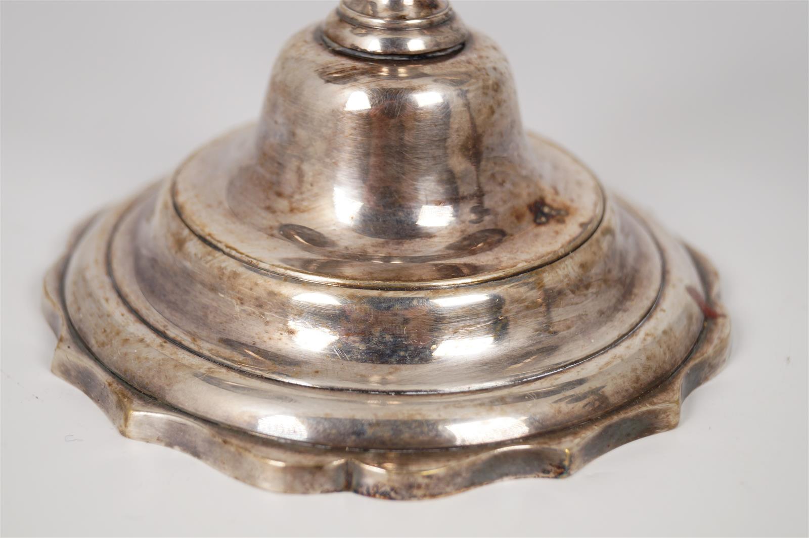 Paire de flambeaux à deux lumières en métal argenté, 19e siècle, H. 16 cm.