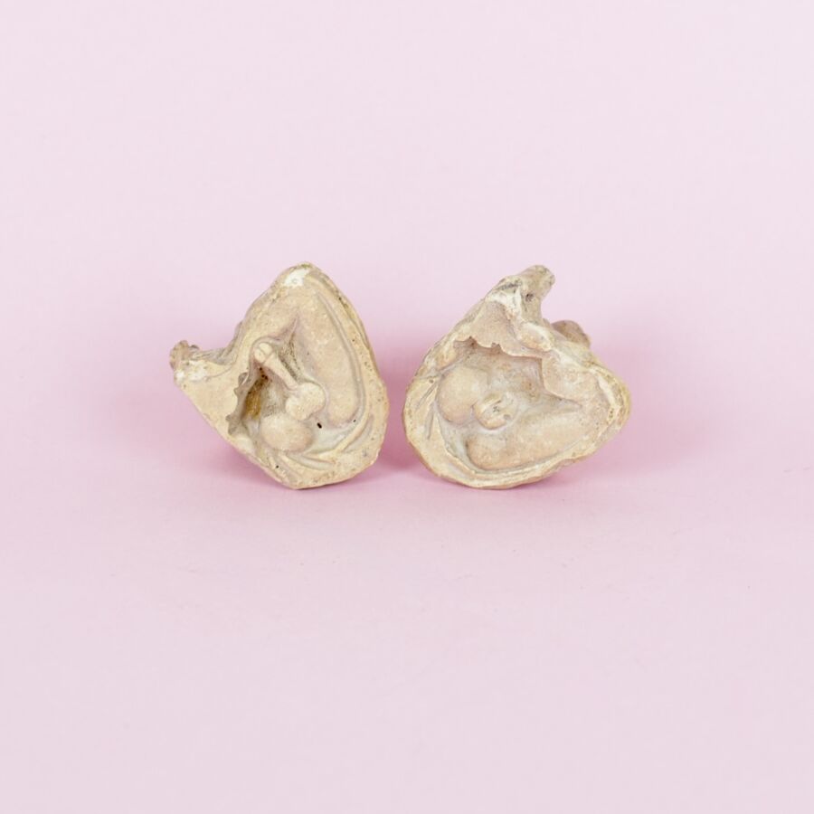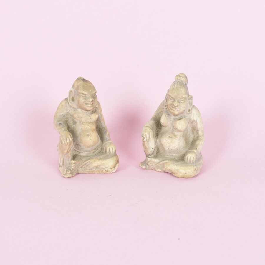 Paire de personnages assis en tailleur, probablement en résine, H. 5 cm