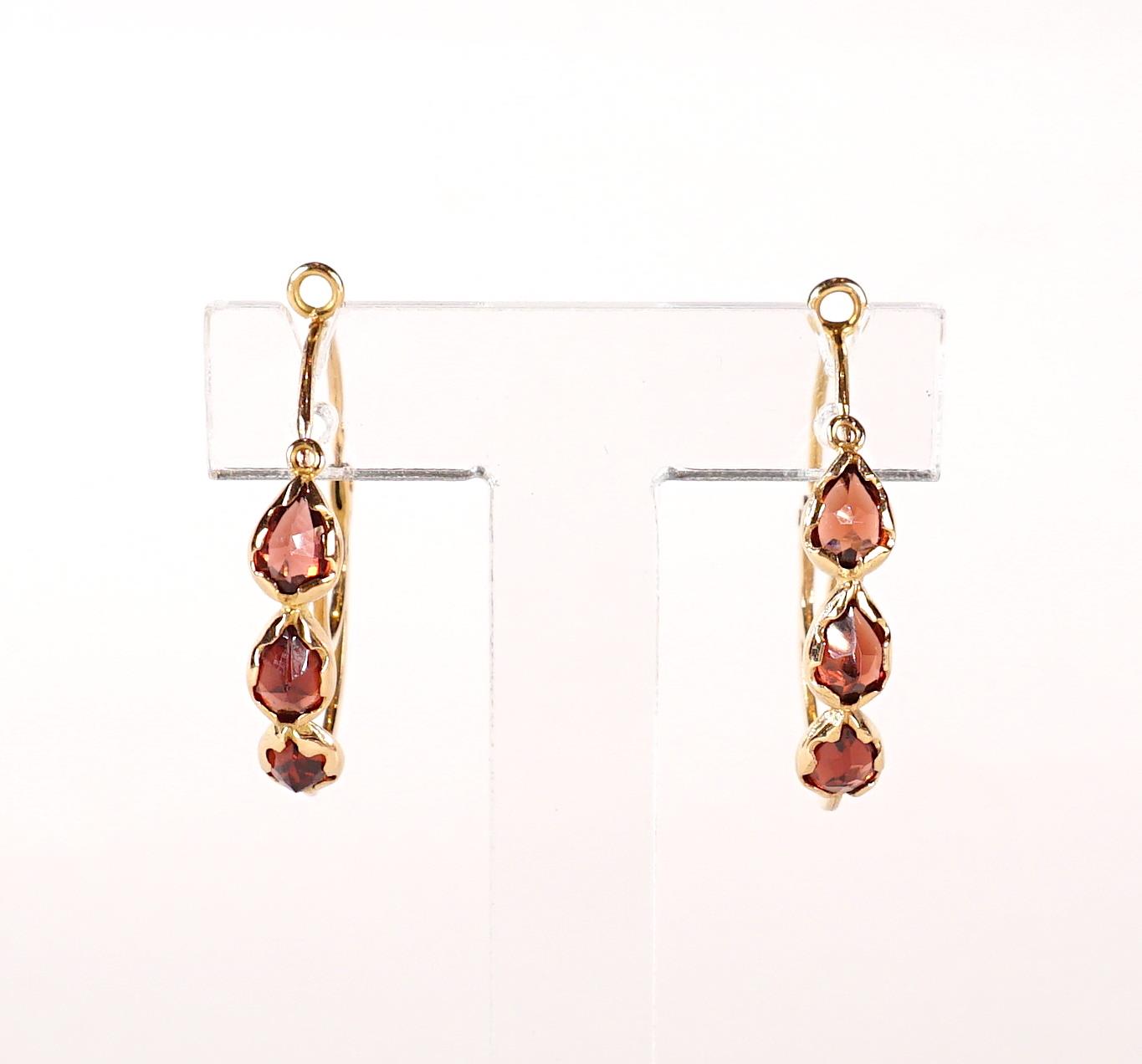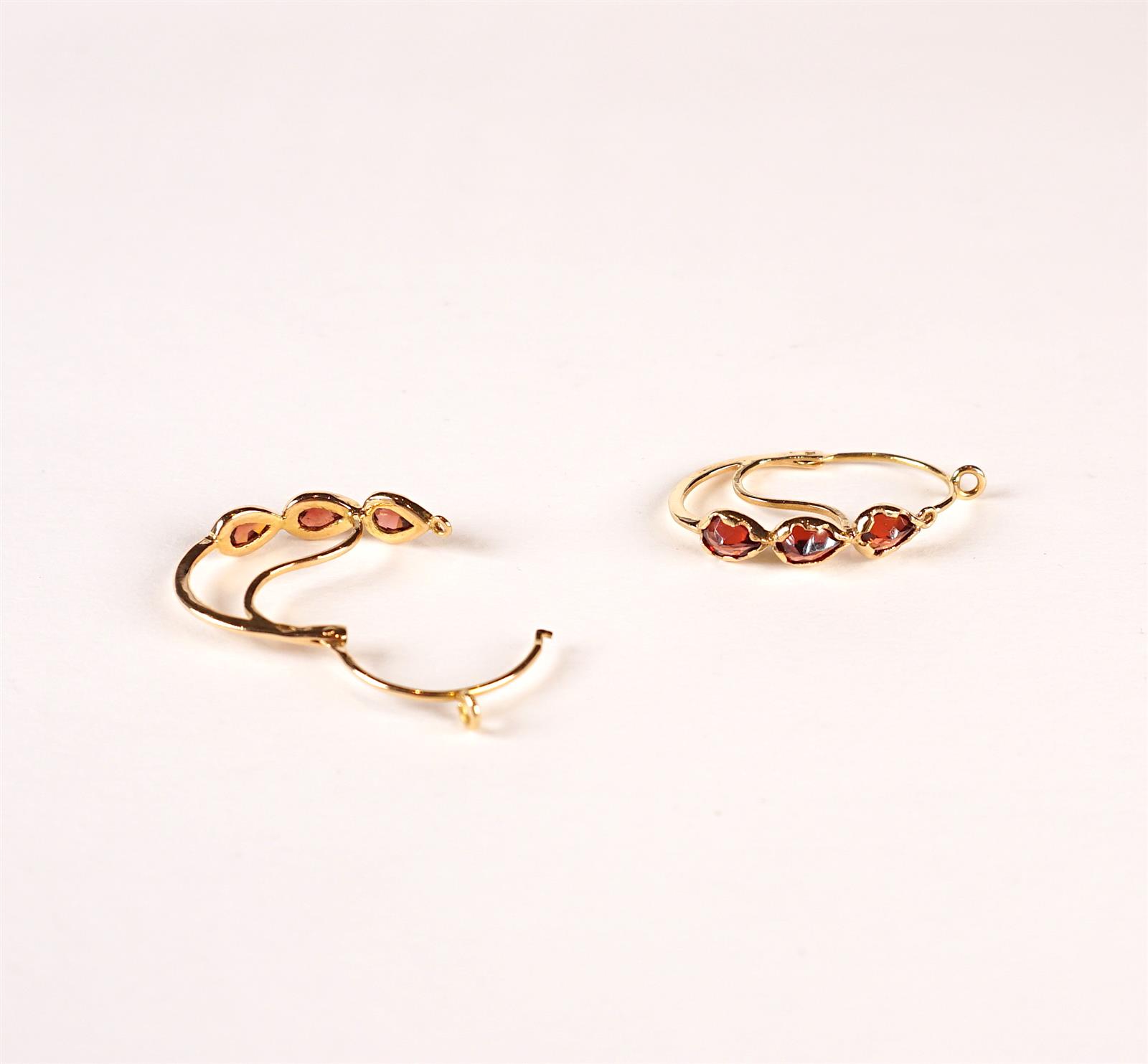 Paire de poissardes en or jaune 18 K (750/oo) agrémentées chacune de 3 topazes (modernes). Poids brut : 4.67 g environ.