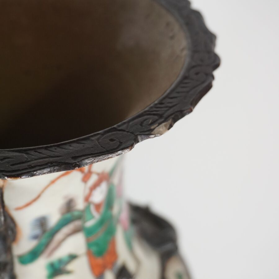 Paire de vases de forme balustre, porcelaine émaillée polychrome à décor de guerriers, Nankin, Chine, 20ème siècle, H. 44.5 cm (petits éclats).
