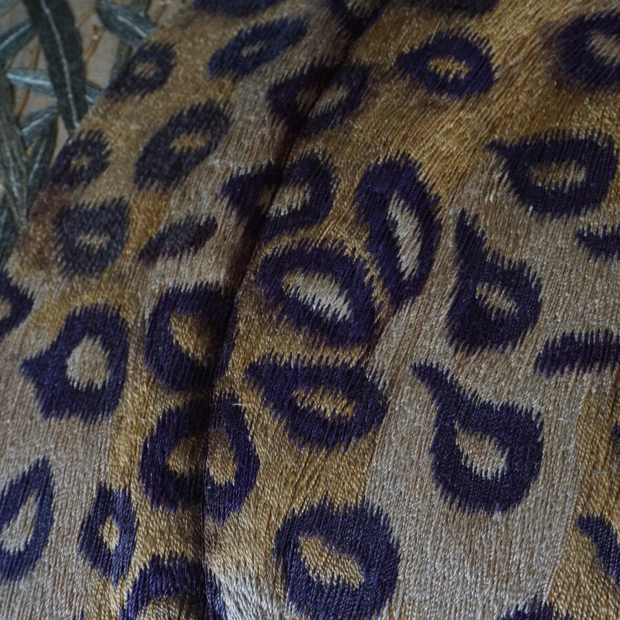 Panneau en lin brodé figurant un couple de panthères, Japon, circa 1920, 142 x 59 cm (taches).