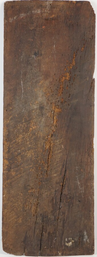 Panneau rectangulaire sculpté représentant un homme debout en costume de Pontivy et fleur de lys en bas-relief, travail breton, 19e siècle, H. 59 cm.
