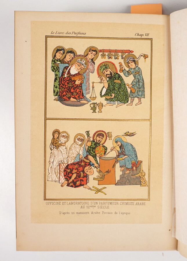 [PARFUMERIE] - RIMMEL (Eugène) - Le livre des parfums. Préface d'Alphonse Karr - Bruxelles, Gand, Leipzig. C ; Muquardt, Paris ; Dentu, [], [1870] - 1 volume In-8° - Quelques rousseurs éparses - Titre gravé d'après Cheret, très nombreuses figures en noir in texte et à pleine page et 12 planches hors texte en chromolithographie, parfois rehaussées d'or - Reliure éditeur toile bordeaux ornée or et noir au 1er plat, noir au 2nd (1 petite fente au 1er mors) - Dos titré or et orné à l'identique (coiffe supérieure légèrement élimée, légèrement passé uniformément) - Tranches dorées - Bon exemplaire en édition originale de cette histoire des parfums et de la parfumerie à travers les siècles et les continents dont l'auteur, parfumeur, laissa son nom au mascara.