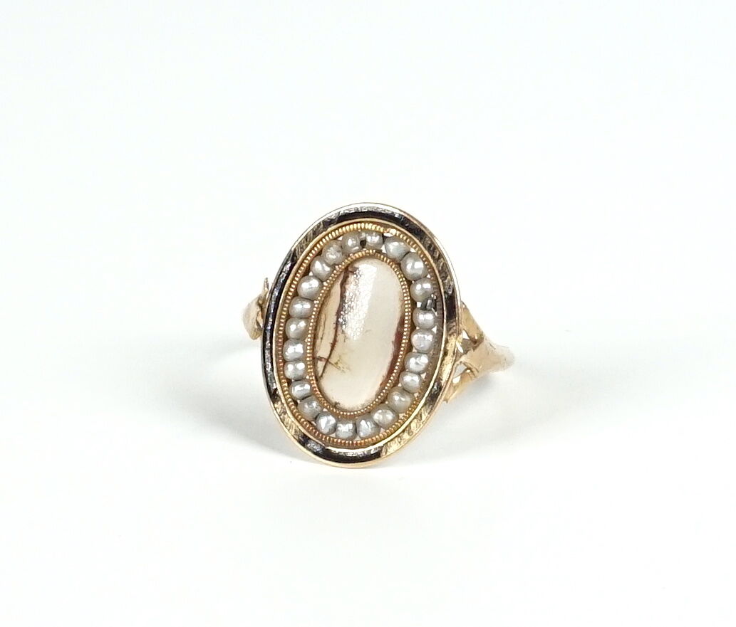 - une bague agrémentée d'un médaillon. TDD 55. Poids brut : 1.6 g environ.