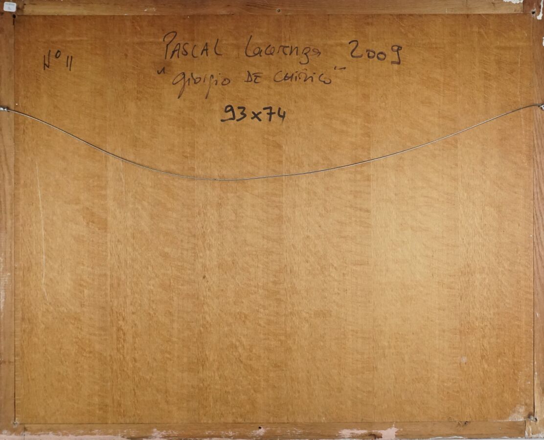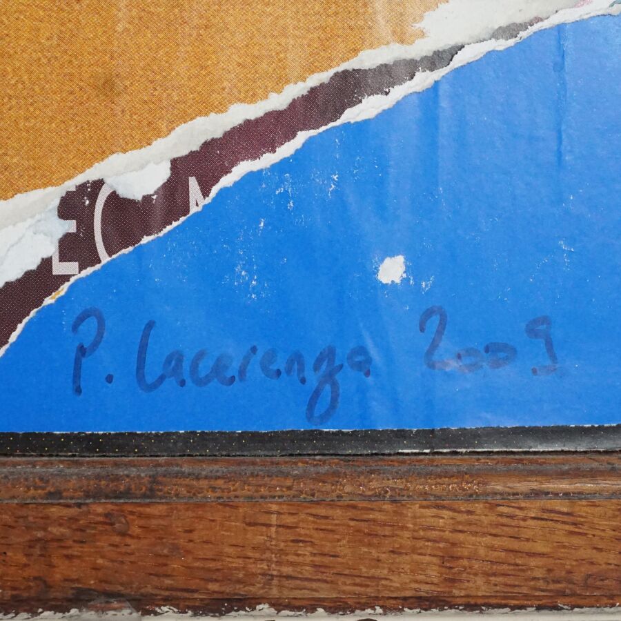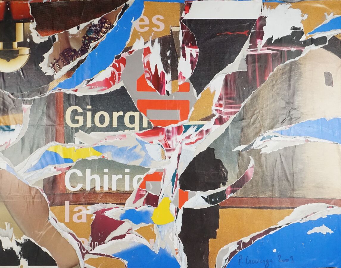 Pascal LACERENZA (1962), "Giorgio de Chirico" 2009, collage et affiche lacérée marouflée sur panneau de bois, signée et datée en bas, contresignée au dos, 74 x 93 cm.
