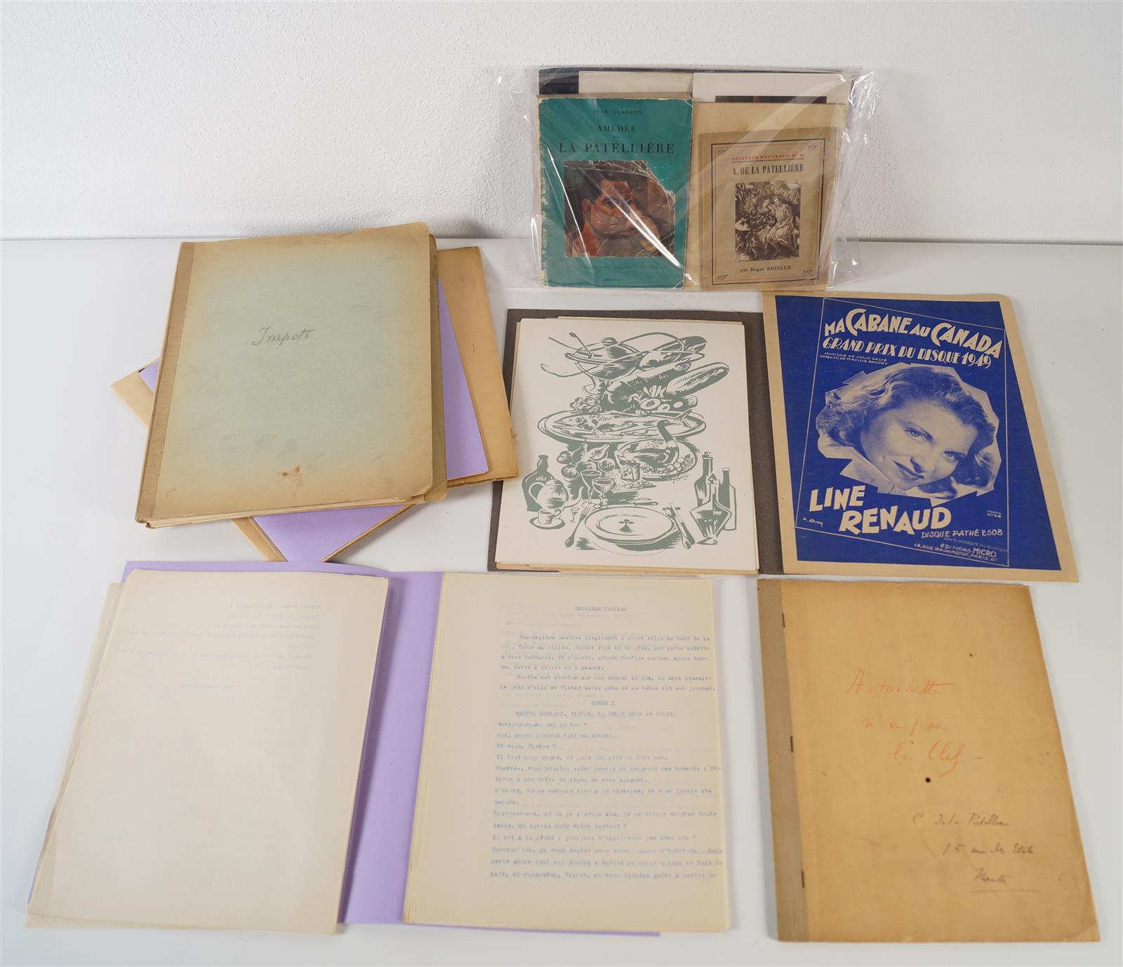 PATELLIERE (Charles, de la) - 1881-1952 - Ensemble comprenant des textes originaux et inédits du frère aîné d'Amédée de la Patellière, peintre de l'école de Paris, à savoir : 34 poèmes écrits entre 1931 et 1947, 6 nouvelles et 2 pièces de théâtre - Les textes sont soit des manuscrits, soit des tapuscrits dont 3 signés par l'auteur - On y joint : Des documents personnels lui ayant appartenu et une histoire de la filiation de la famille - On y joint : 10 plaquettes, cartons et catalogues d'exposition de 1932 à 2001, du peintre Amédée de la Patellière - Ensemble unique.