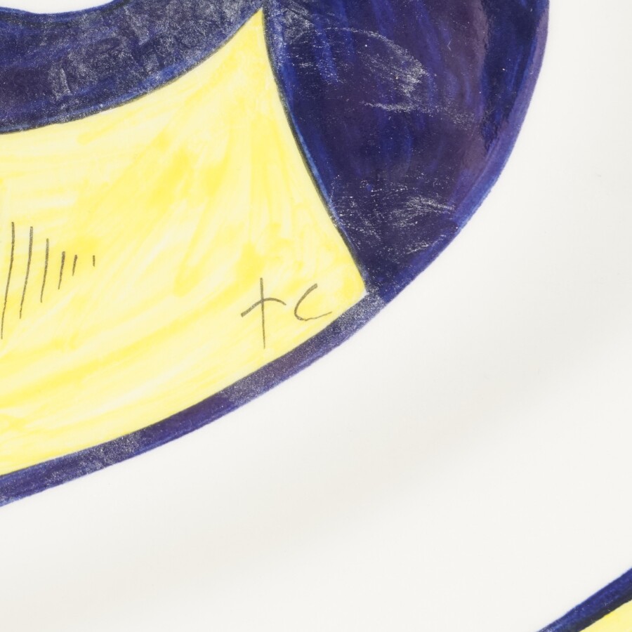Patrice CUDENNEC (1952) - QUIMPER : Plat ovale en faïence émaillée polychrome à décor d'un pêcheur dans le bassin, marqué au dos, numéroté 5 / 50, 40.5 x 26 cm.