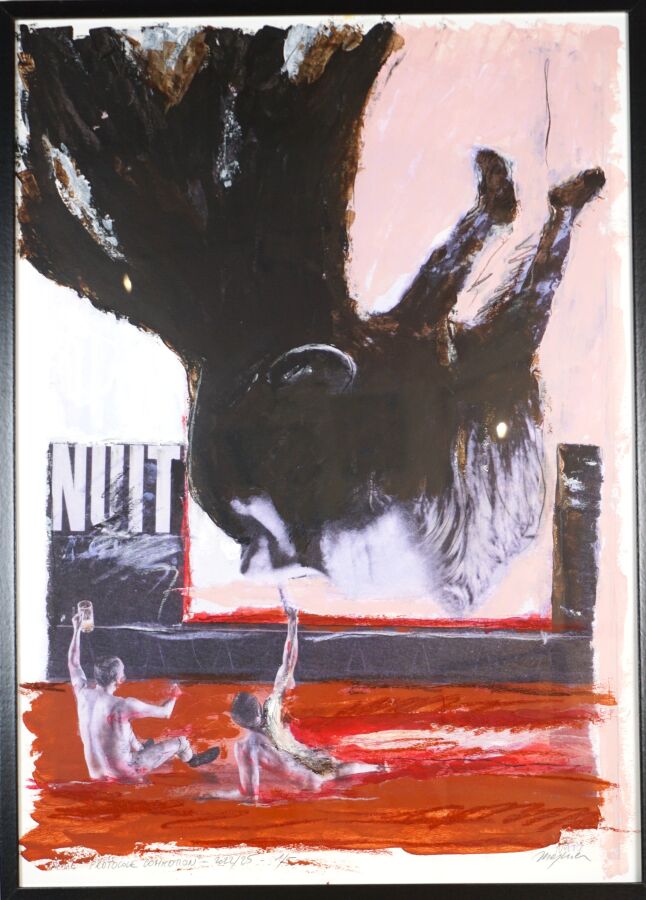 Patrick MEYNIER (XX-XIXe), "N°117 Nuit", collage rehaussé d'acryliques, craies et crayons sur papier, signé en bas à droite et numéroté 1/5 en bas à gauche, 50 x 70 cm.