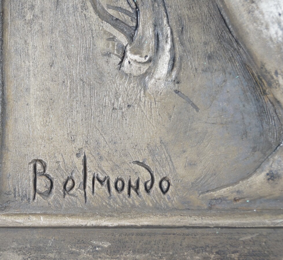 Paul BELMONDO (1898-1982), "Les trois grâces", bas-relief en bronze représentant trois femmes drapées à l'antique, signée en bas à gauche en creux, 56 x 50 cm.