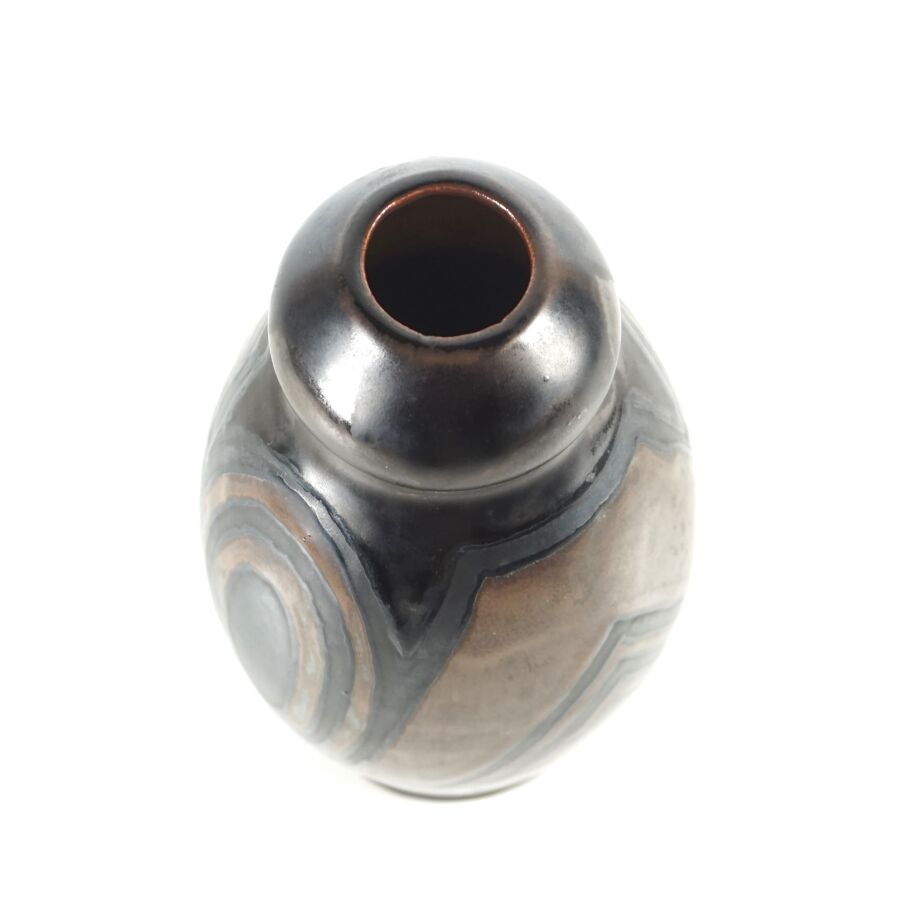 Paul FOUILLEN (1889-1958) - Période ODETTA : Vase en grès émaillé polychrome sur fond brun, à décor d'un portrait de profil, marqué dessous et réf. 510-1261, H. 24.5 cm.