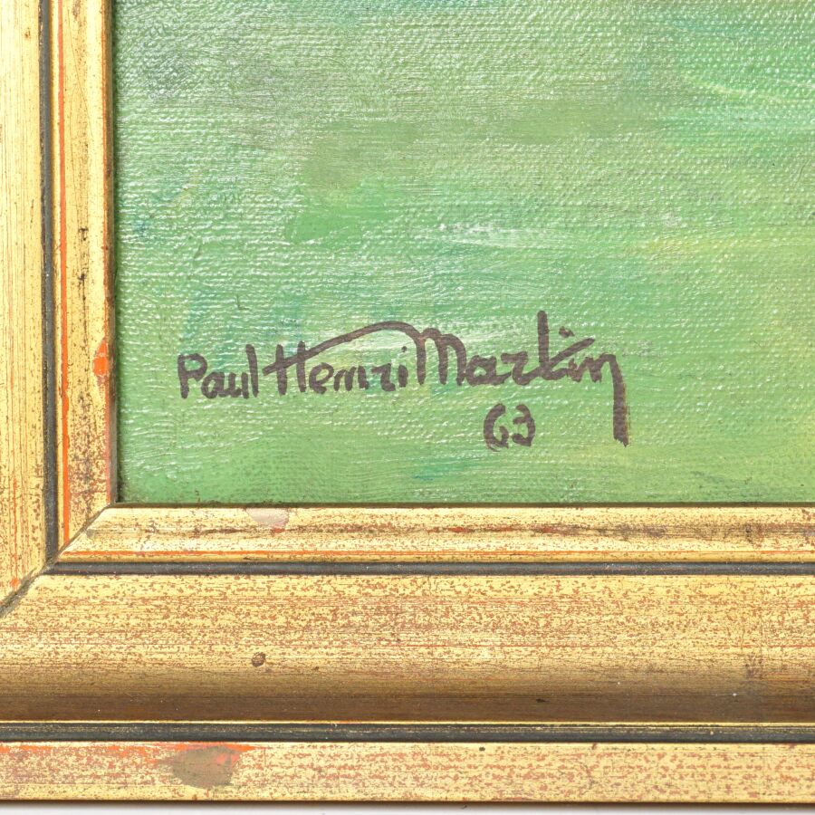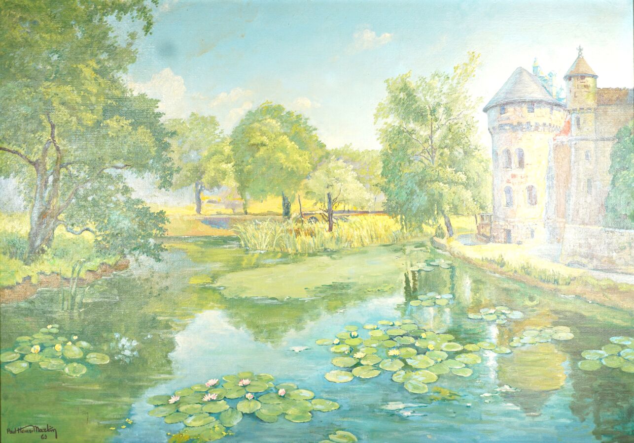 Paul-Henri MARTIN (XXe), "Douve au nénuphar" 63, huile sur toile signée et datée en bas à gauche, 65 x 92 cm.