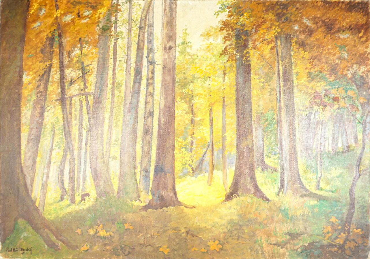 Paul-Henri MARTIN (XXe), "La hêtraie" 63, huile sur toile signée et datée en bas gauche, 65 x 92 cm.