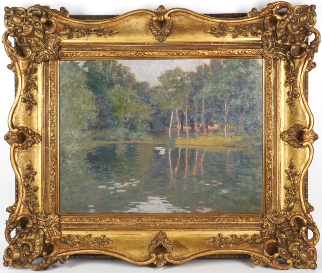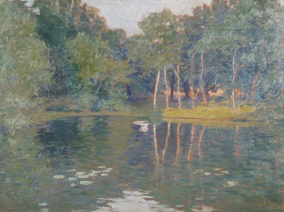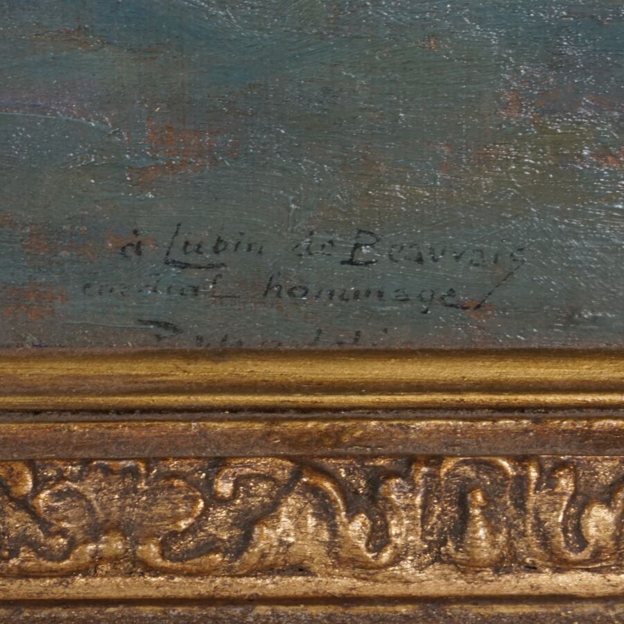 Paul MADELINE (1863-1920), "La campagne", huile sur panneau signée en bas à droite, dédicacé "Cordial hommage à Lubin de Beauvais", 37 x 46 cm.