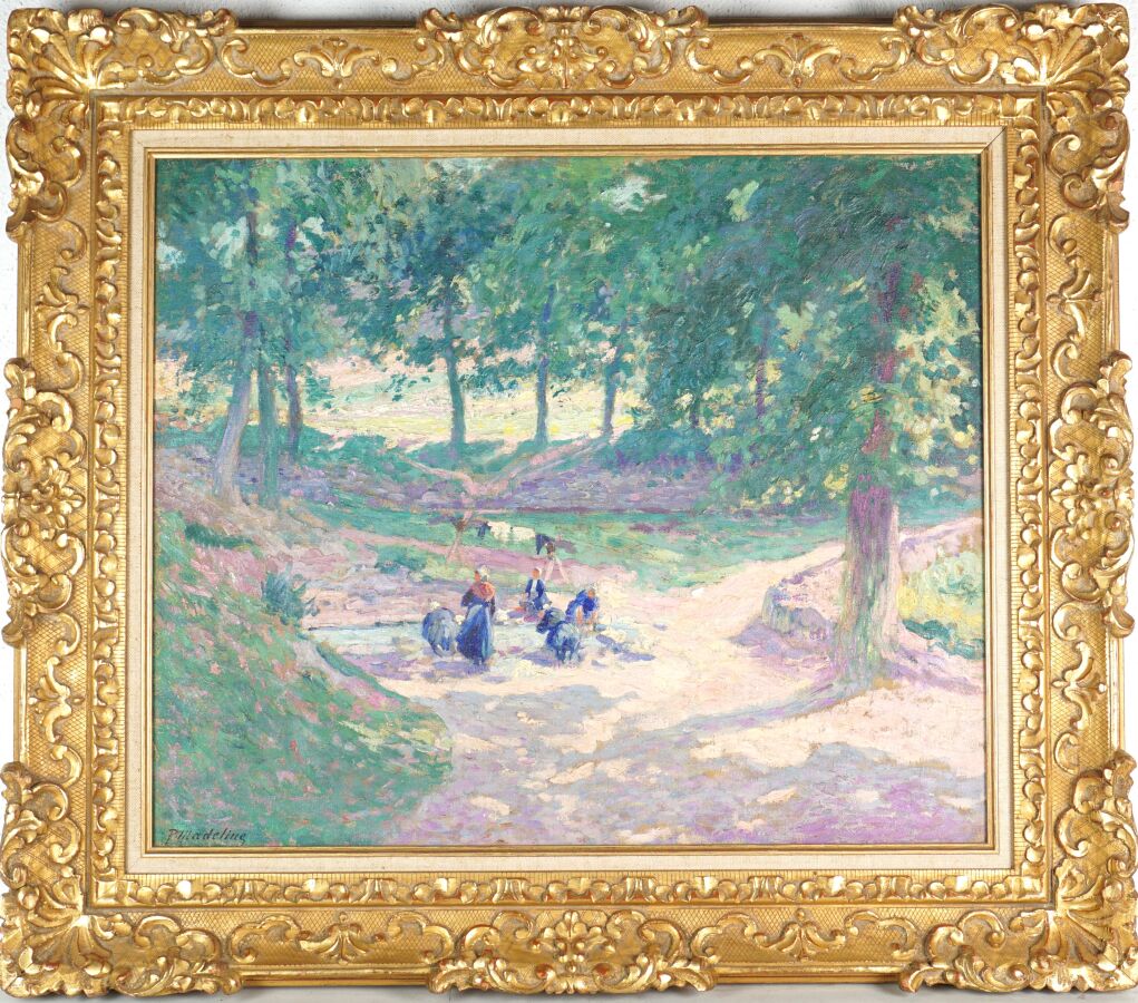 Paul MADELINE (1863-1920), "Lavoir près de Douarnenez", huile sur toile signée en bas à gauche, 46 x 55 cm.