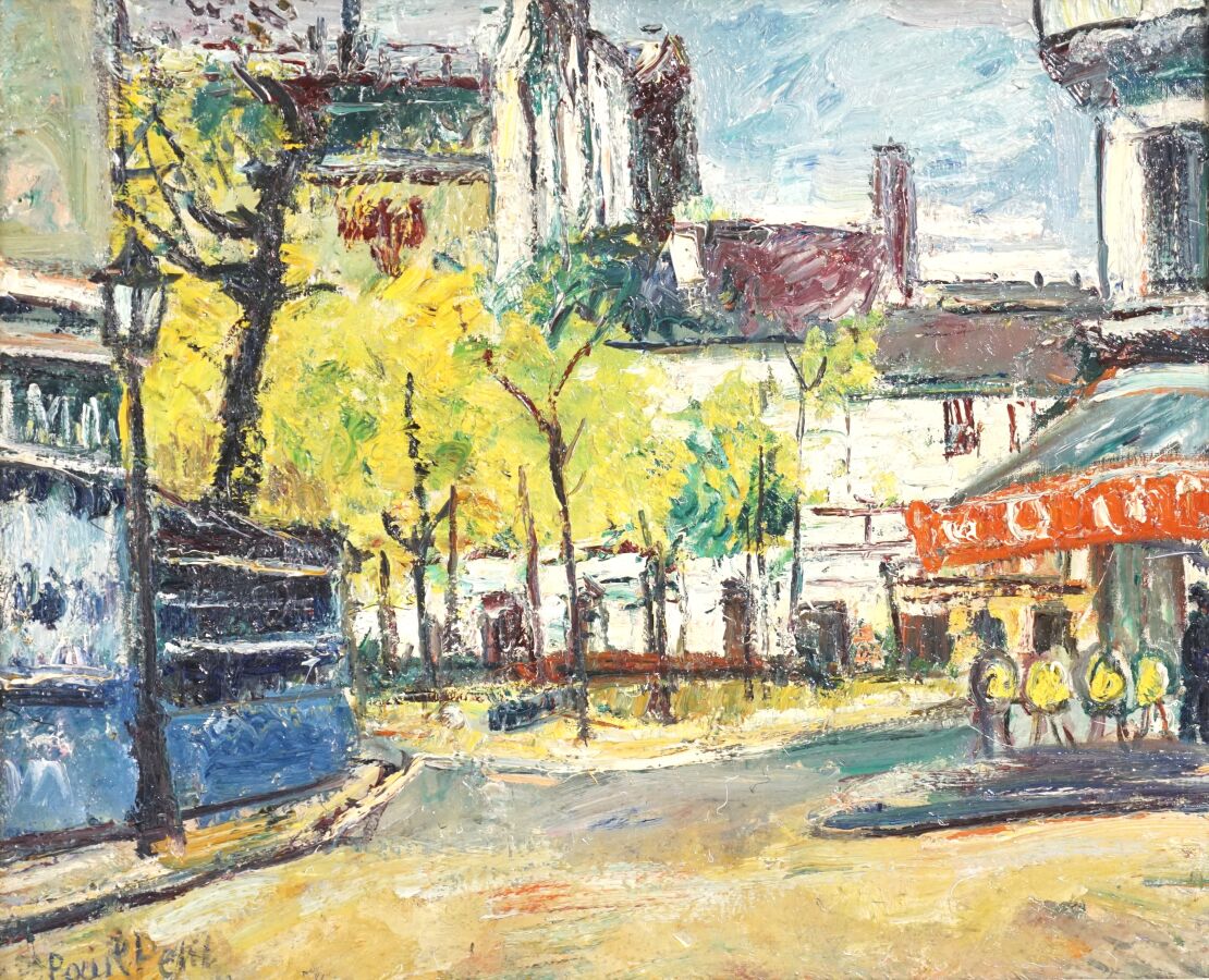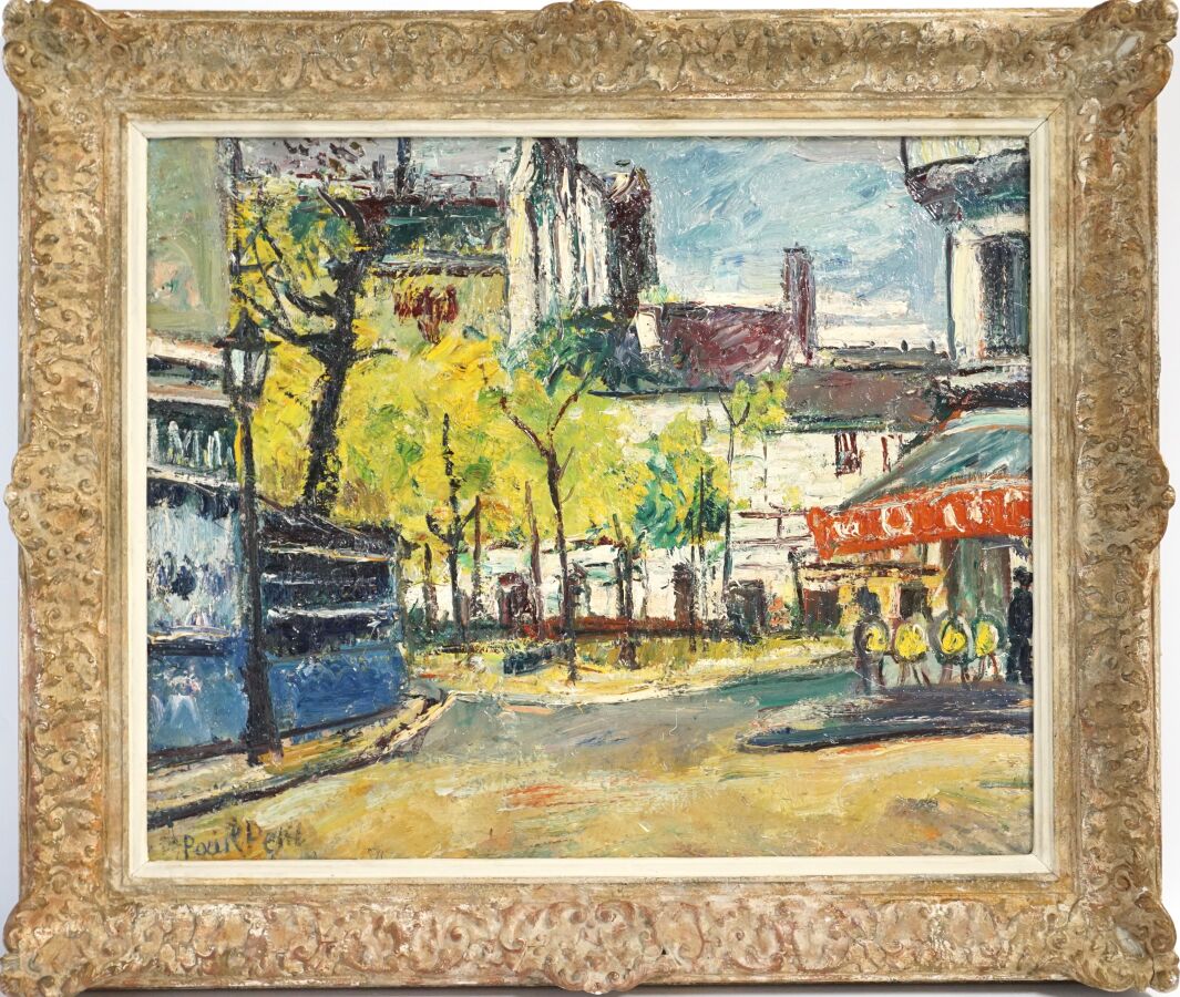 Paul PETIT (1877-1958), "Le café de la place, Paris", huile sur toile signée en bas à gauche, 50 x 61 cm.