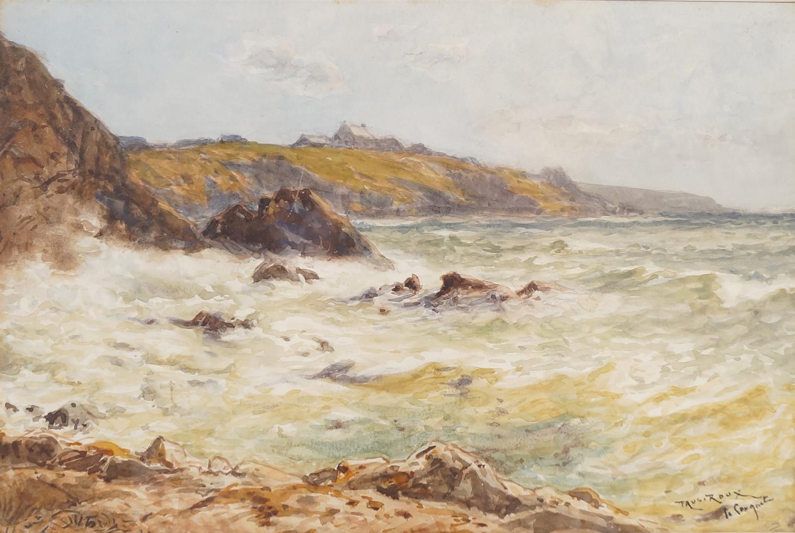 Paul ROUX (c.1845-1918), "Côte sauvage au Conquet" & "Chemin dans le bois de boulot, Puisieux", deux aquarelles signées et situées, 18 x 26 cm.