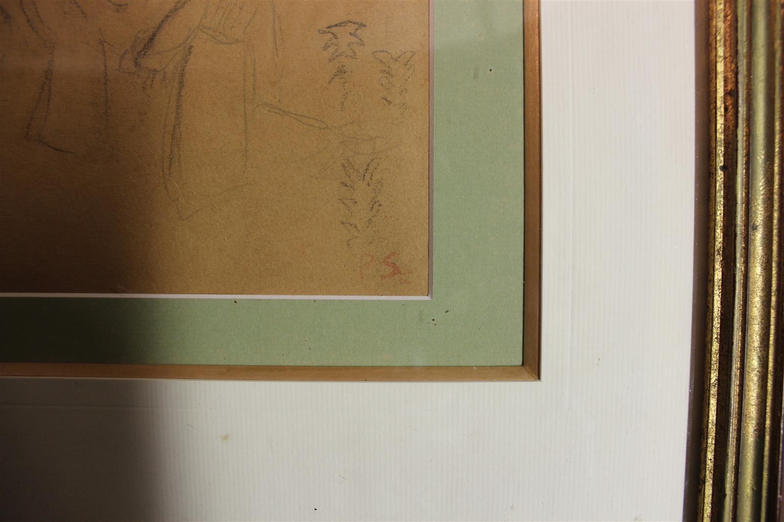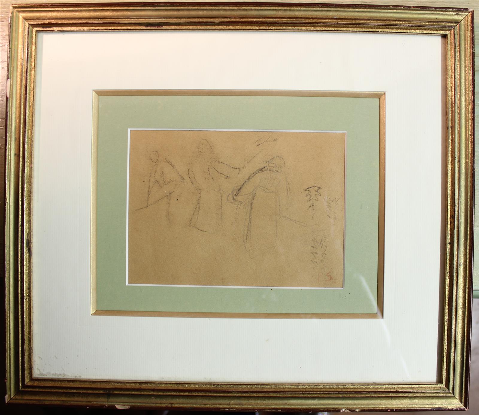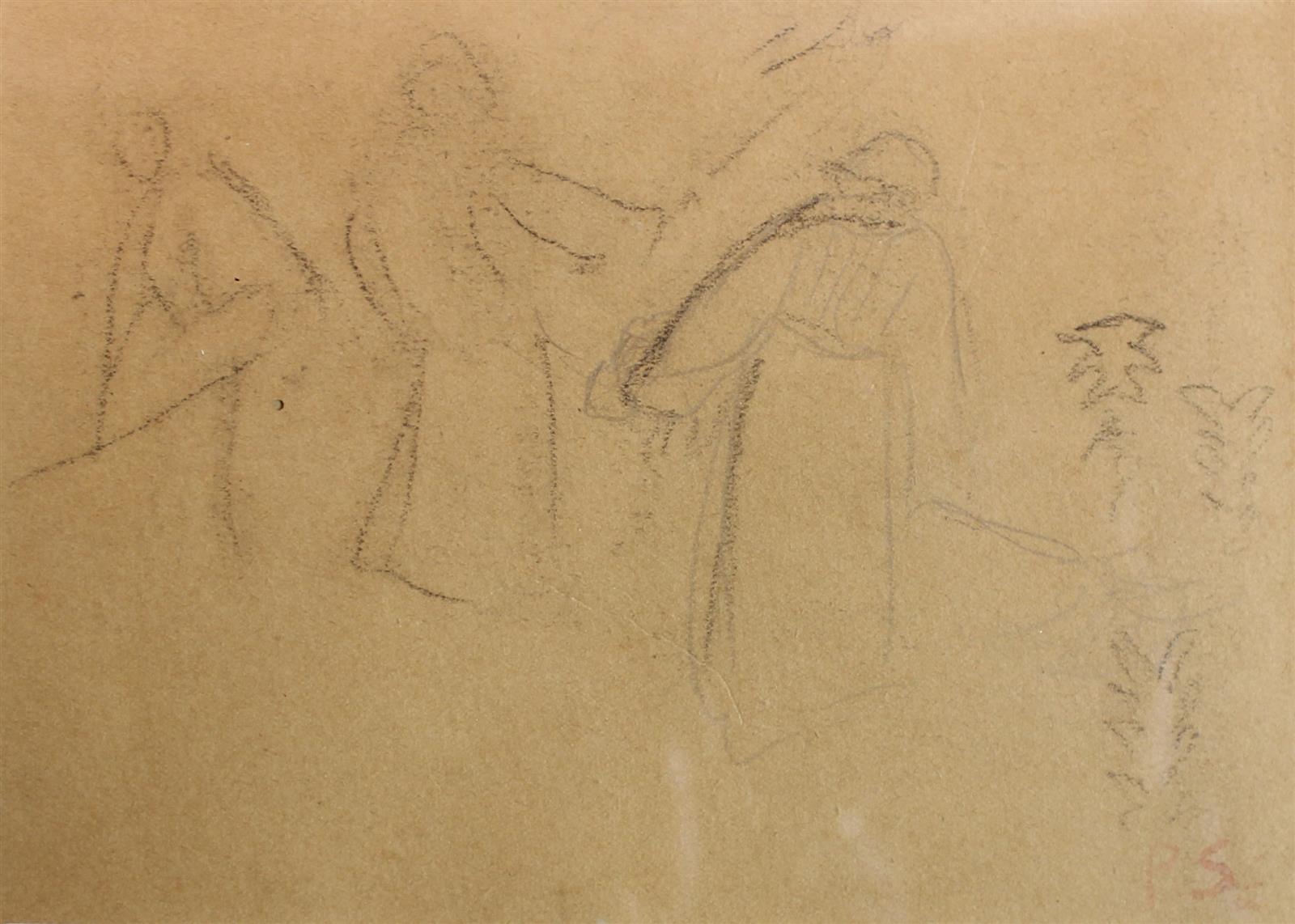 Paul SÉRUSIER (1864-1927), "Le battage du blé noir", dessin préparatoire à la mine de plomb pour l'oeuvre du même nom de 1890, signé du cachet rouge "P. S." en bas à droite, 12.5 x 17 cm (Provenance : Vente Boutaric, Piasa 12 décembre 2008)